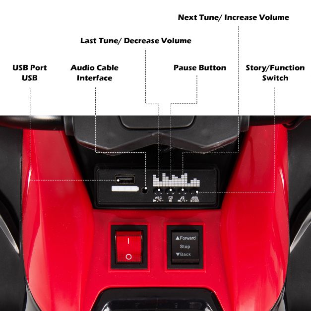 This electric ATV is a good choice for kids to have fun, and is suitable for kids over 3 years old. Cool ATV appearance, bright LED lights, music and story can provide kids with endless joy. Durable PP material and metal frame ensures high stability and sturdiness, which can perfectly hold up to 30kg. Besides, wide seat and footrest offer kids super comfort. Car hopper enables your children to place their favorite toys. Apart from that, 6 wear-resistant wheels allow kids to enjoy the riding fun wherever they like. Equipped with 4 driving motors, this vehicle’s speed can reach 3-6 km/h. Additionally, the backrest design protects kids from suddenly leaning back. This ride-on ATV is a perfect gift for your dear kids If you are looking for such a product, do not hesitate to take it to your home! Slow Start and Shock Absorbing Function: This ride on ATV with advanced slow start technology can perfectly protect your kids when they are driving. Thus, you don’t need to worry about hurt caused by fast start. In addition, 6 durable wheels with shock-absorbing shaft allow kids to safely ride on different roads. Easy to Operate and Drive: The electric vehicle is easy to operate with right handlebar to control the speed and foot pedal to stop the ATV. This battery powered vehicle also allows kids to freely ride forward and backward. Besides, humanized footrest, wide seat and ergonomic backrest ensure a comfortable driving experience. Various Entertainment Functions: LED lights, music and story can bring kids endless fun. When they are driving, they won’t get bored. Children can press the button on the dashboard to freely adjust the volume and switch songs. Besides, car hopper helps kids conveniently place different items. Strong Power and Rechargeable Battery: With 4 powerful motors, the speed of this ride-on car can reach 3-6km/h. Equipped with a rechargeable battery (12V 10AH) and UK-certified charger adapter, the ride-on car enables kids to enjoy joy for more than 40 minutes. Additionally, the charging time is 8-12 hours. Ideal Gift for Your Kids: The 12V ride on ATV is a good choice for parents to accompany their children. Made of high-quality PP material and iron frame, the ride on ATV can hold up to 30KG, which is durable and safe for kids to use. It is a perfect gift for kids over 3 years old.