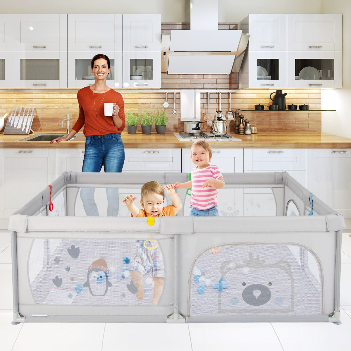 - 1 × Baby Playpen with 50 Balls & 2 Doors & Breathable Net & Zipper Penguins