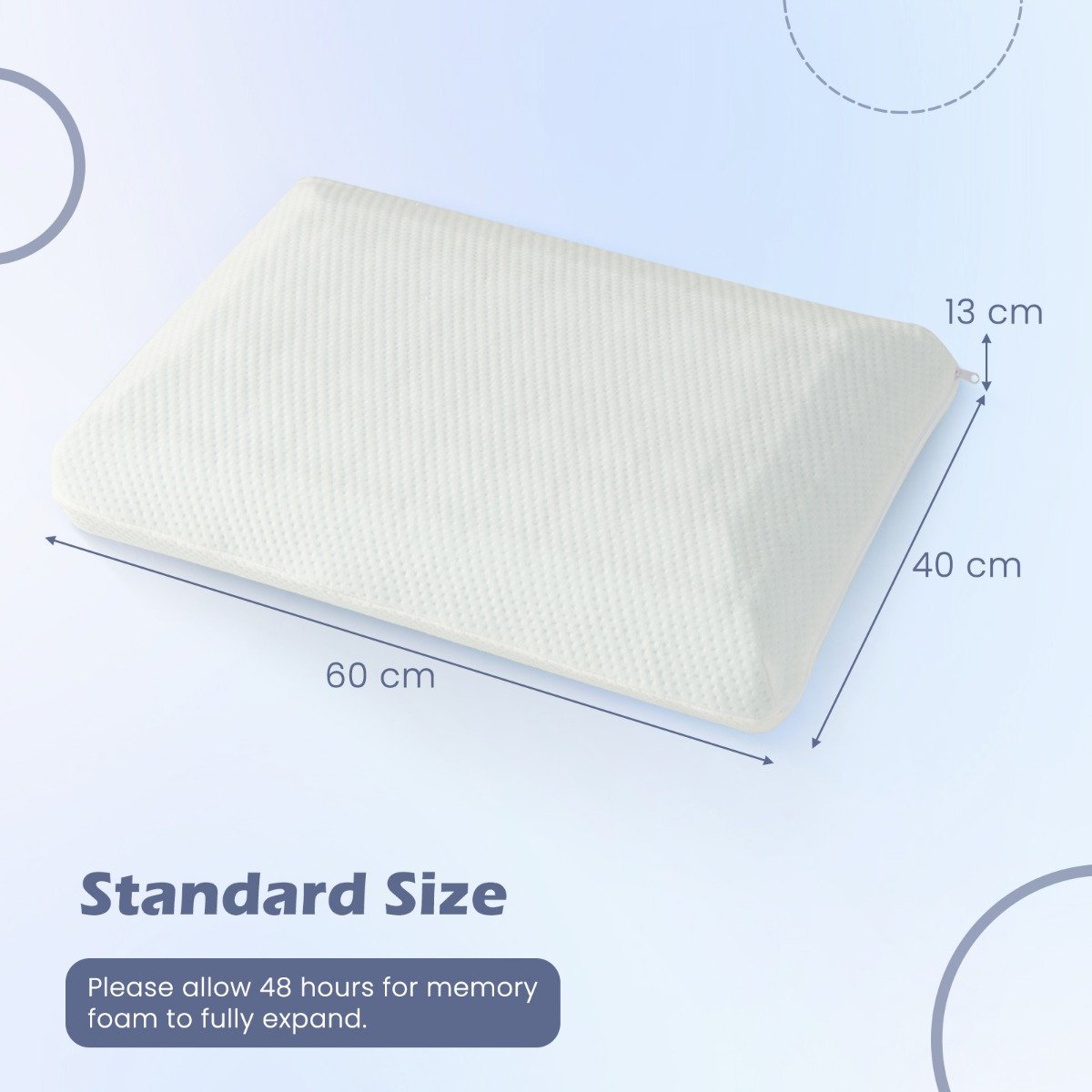 Colour: White Material: Polyester, Charcoal Memory Foam Overall Dimensions: 60 x 40 x 13 cm (L x W x Thickness) Net Weight: 1.5 kg Box Qty:1(May vary by batch)Package Includes: 2 x Pillows