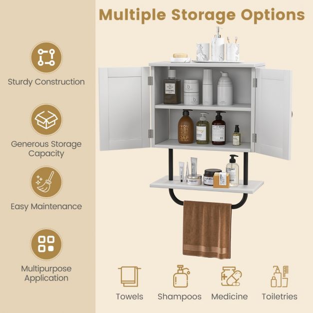 Bathroom Wall Cabinet with Double Doors & Open Shelf & Towel Rack-White