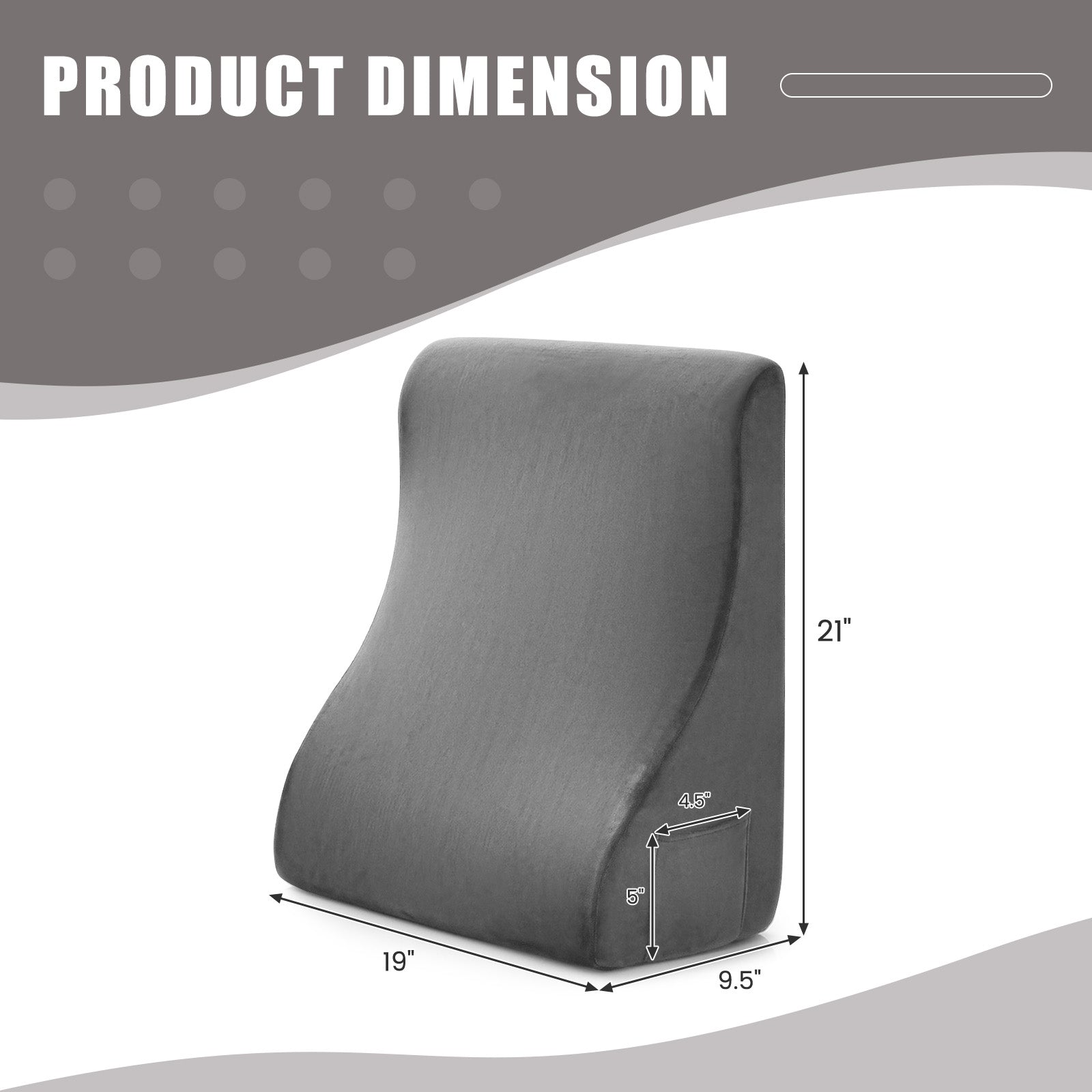 - 1 × Bed Wedge Pillow with Tablet Pillow Stand and Side Pockets-Gray