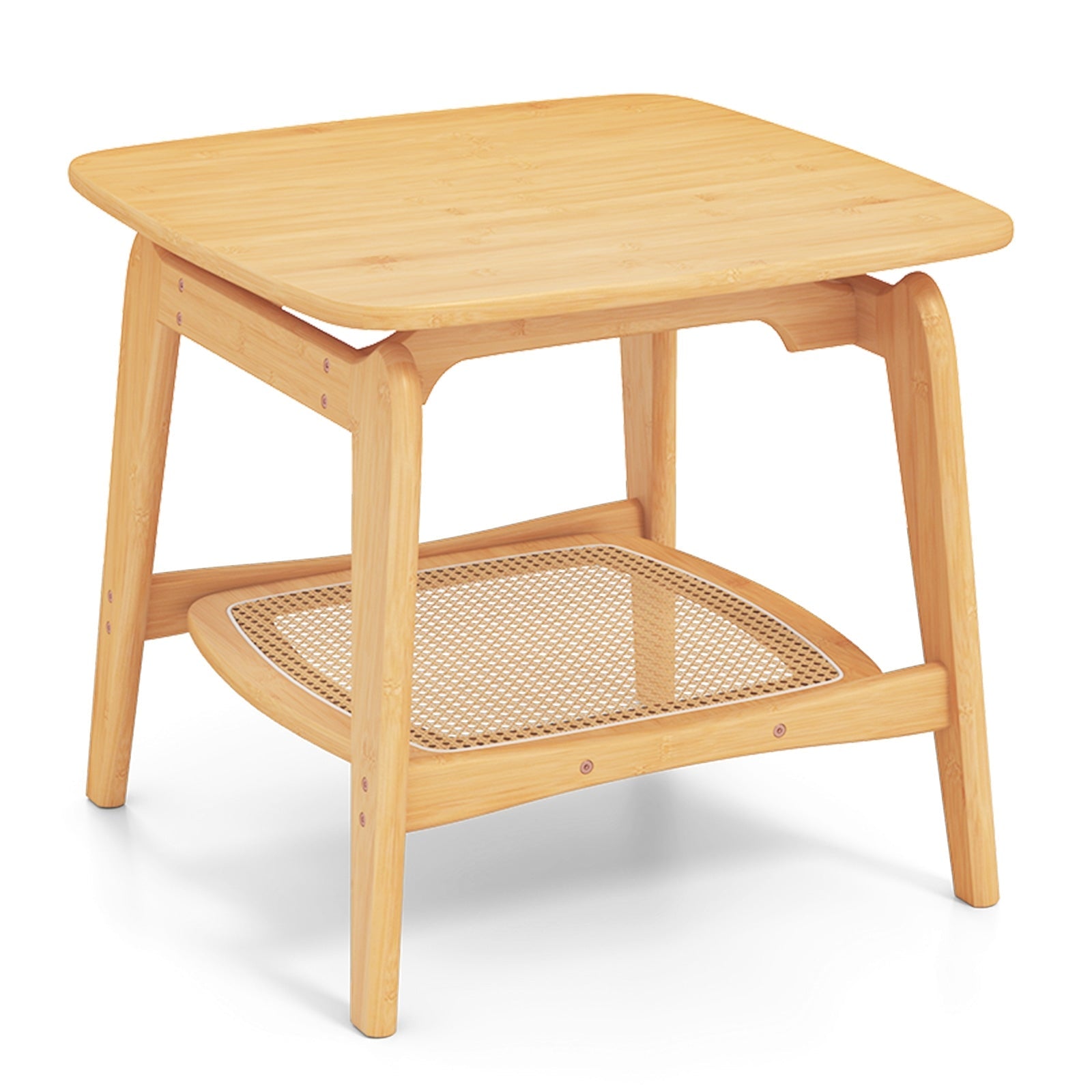 - 1 × Boho Bamboo Sofa Side Table with Faux Rattan Storage Shelf-Natural