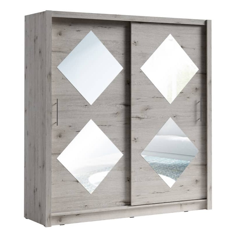Artemis 2-Door Mirrored Sliding Wardrobe 180cm - Matt Black, Brown or Sonoma Oak