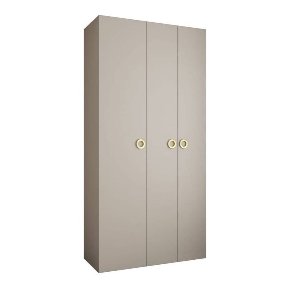 Ideal for bedrooms or guest rooms, the Como I Hinged Door Wardrobe offers a sleek and modern design while providing ample storage. With three hinged doors, eight shelves, and a hanging rail, you can keep your belongings neatly organized. The high-quality laminated board construction ensures durability, while the gold metal handles add a sophisticated touch, making it a stylish addition to any room.