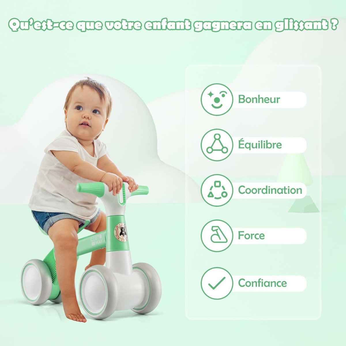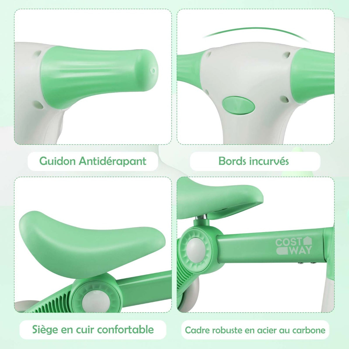 This cute baby balance bike 4-wheel children's bicycle without pedals 55.5 x 26 x 39 cm green is designed to keep your space organised while delivering reliable everyday functionality and a clean, modern look.
