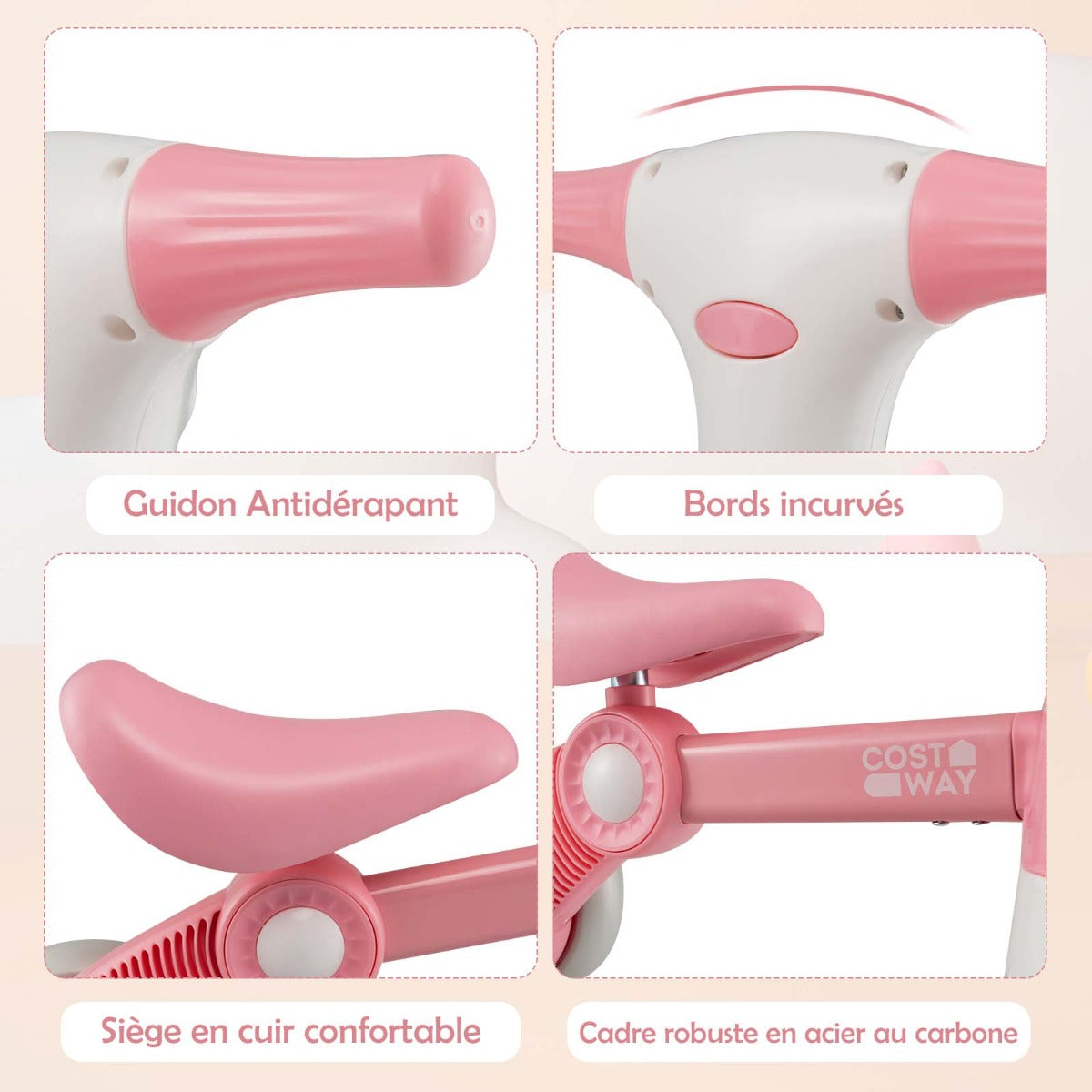 This cute baby balance bike 4-wheel children's bicycle without pedals 55.5 x 26 x 39 cm pink is designed to keep your space organised while delivering reliable everyday functionality and a clean, modern look.