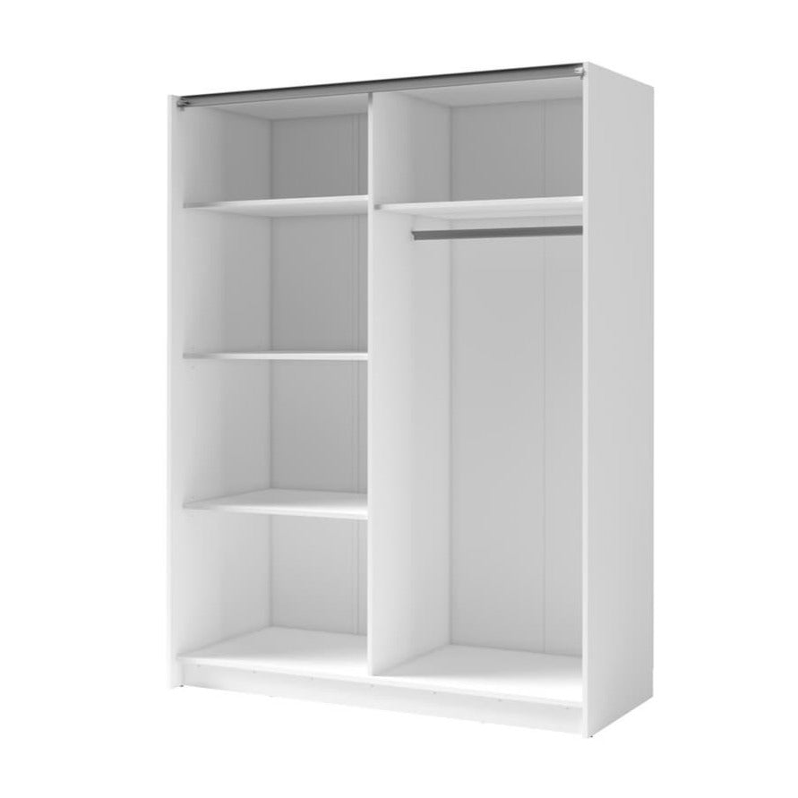This beautifully designed wardrobe features a contemporary look with two sliding doorsÑone mirrored for convenience. Its spacious interior includes four shelves and a hanging rail, making it ideal for organizing clothes and accessories. Crafted from durable 16mm laminated board and equipped with sleek aluminium handles, this wardrobe is both functional and stylish. Available in classic black or crisp white, it seamlessly integrates into any decor. Assembly is required for easy setup.