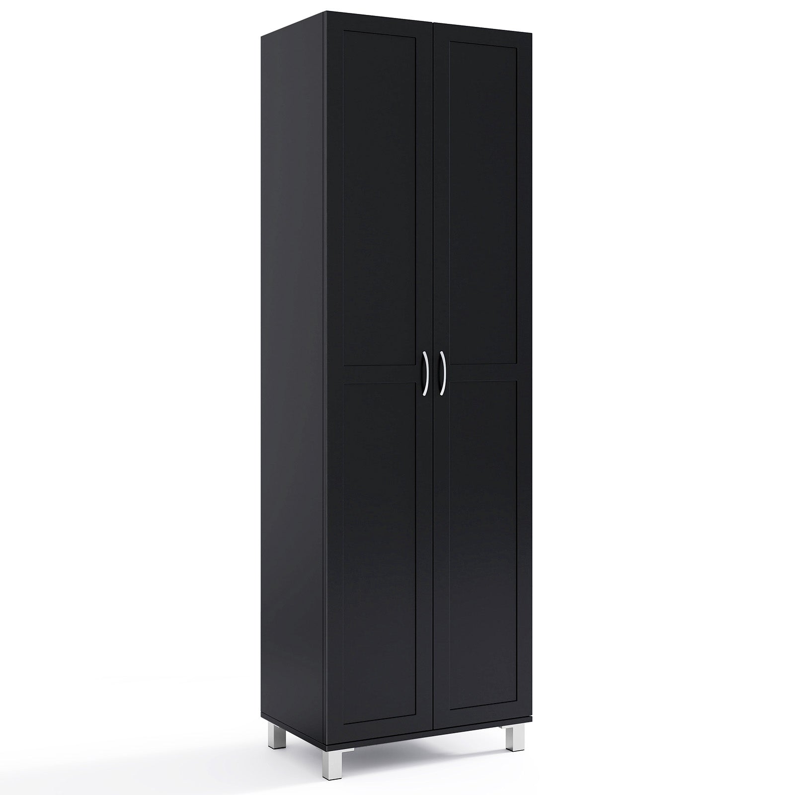 Double Door Tall Storage Cabinet with Adjustable Shelf and Anti-tilt Design-Black