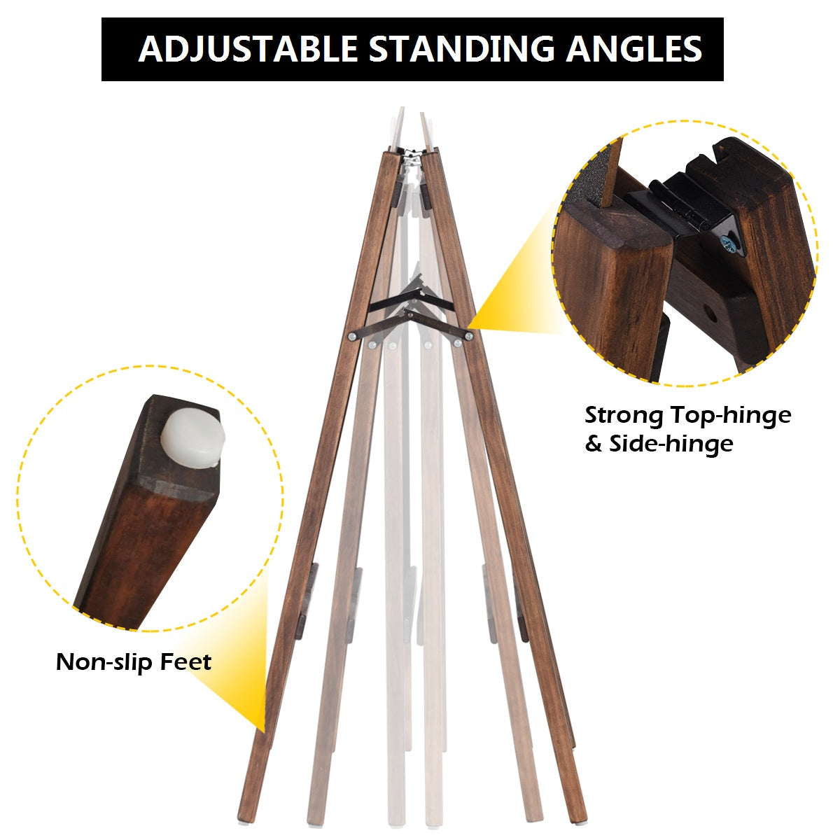 This "A" frame sign has double blackboards so that you can create your own signs. This "A" frame board offers double sided blackboards. Create your own signs with white or coloured chalks. Great for both inside and outside use, with locking side hinges and non-slip feet. If you are looking for a such product, do not hesitate to buy it! You can write on both sides on each board The "A" board design makes for a more stable stand The pine frame has been stained with waterproof staining Suitable for inside and outside use (designs may run in wet weather) For durability, the slot is 3cm wide The chalkboard is made from MDF and Melamine material, which meets E1 European standard Two heavy duty hinges provide extra stability which can be adjusted for different angles Sanded smooth finish