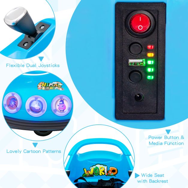 Introducing the ultimate thrill ride for children aged 37-96 months, thisincredible bumper car! Designed with safety, durability, and endless fun in mind, this bumper car is a perfect gift that will leave your little ones beaming with excitement. With its innovative 360-degree rotation design, they can spin, turn, and move in any direction effortlessly, unlocking a world of thrilling adventures. Choose between two control models, let your child take the wheel with the built-in controls, or use the parent-controlled remote for added safety. The bumper car's sturdy construction and safety belt ensure worry-free play, while the colorful flashing lights and realistic sound effects create an immersive experience that will captivate their imagination. With its charming cartoon pattern, dual joysticks, and fascinating lights, this bumper car guarantees endless entertainment. Give your child the gift of joyful memories and watch their faces light up with pure happiness! 360 Degrees Rotation Design:Experience the thrill of a full range of motion with thisadvanced 360-degree rotation design. Let your little one spin, turn, and move in any direction effortlessly, adding a whole new level of excitement to their playtime. 2 Types of Control Model:Take control of the fun! thisbumper car offers two control options. Kids can take the wheel with the built-in controls, or parents can use the convenient remote control for added safety and peace of mind. Parents control model allows kids more safe to play. Safe andDurable Bumper Car:We prioritize your child's safety. thisbumper car is built with sturdy construction and features a safety belt to ensure a secure ride. The soft bumpers provide an extra layer of protection during high-energy play sessions. Exciting Lights andSounds:This bumper car boasts colorful flashing lights and realistic sound effects, heightening the excitement and making playtime even more fun and interactive. Besides, the built-in music and wireless connection also allow your child to enjoy their favorite tunes while driving around. Perfect Gift for Children:A delightful surprise for children aged 37-96 months! thisbumper car features a charming cartoon pattern, dual joysticks, and fascinating lights. It's the ultimate source of endless entertainment, guaranteed to bring pure joy!