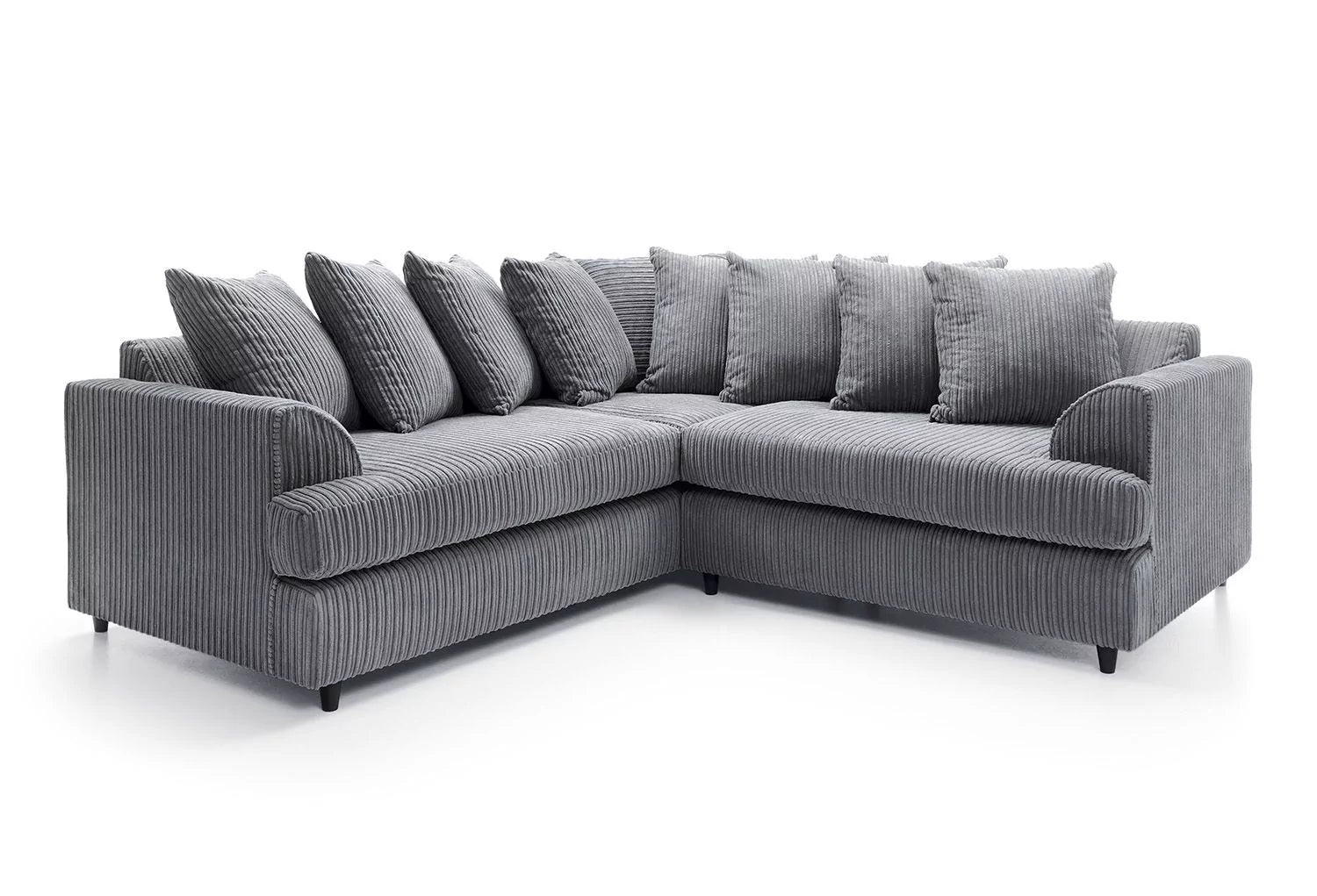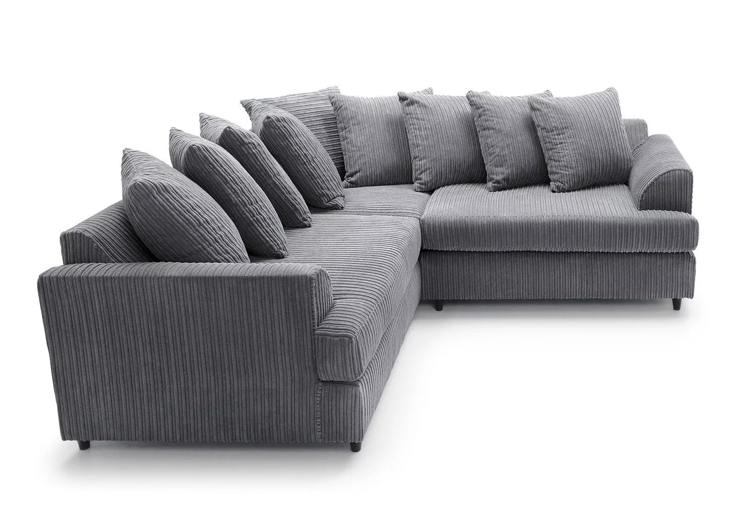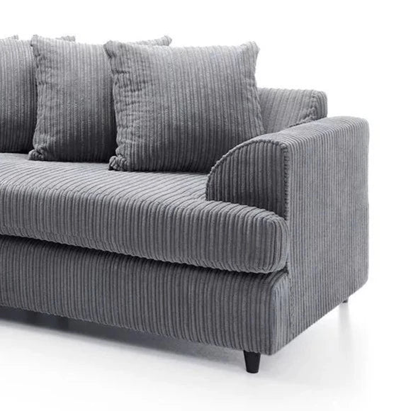 A sumptuous fabric corner sofa with soft structure cord chenille as choice of fabric. Seats 4, comfortably. Angular arms provide comfortable armrests at the ends while a pared back supports scatter cushions to help you immerse yourself in relaxation. Providing comfort is deep filled fibre seats and a back that give you plush cushioning.