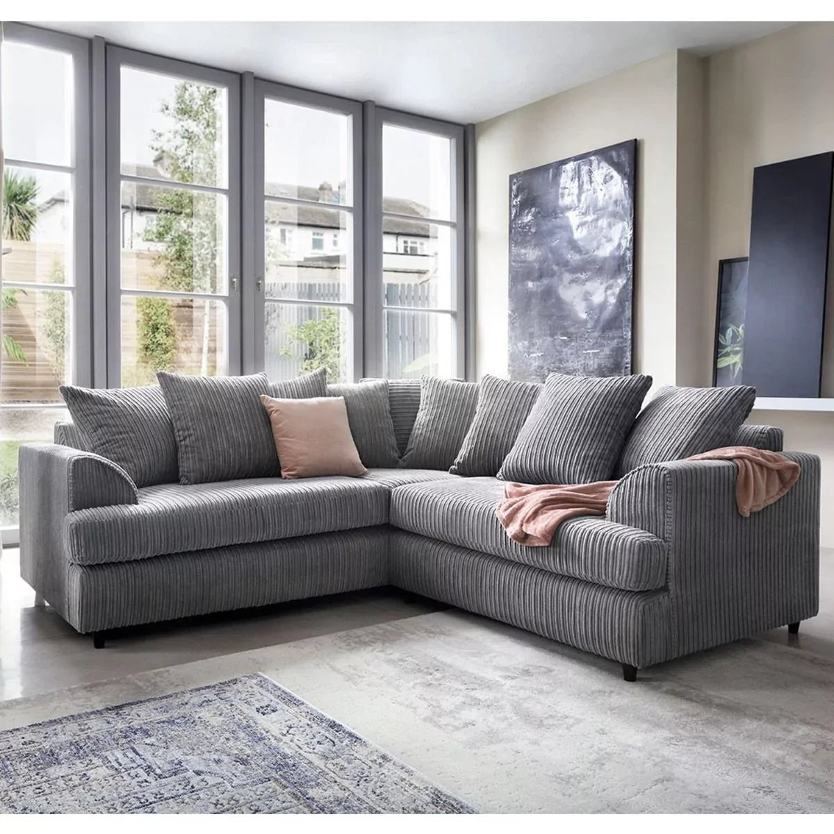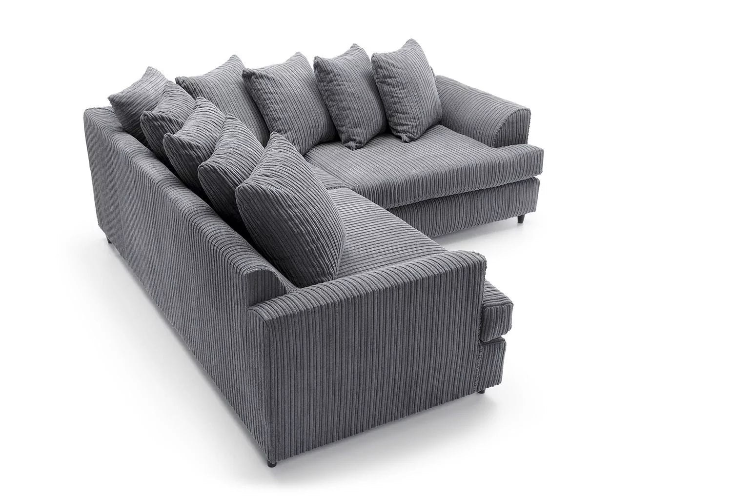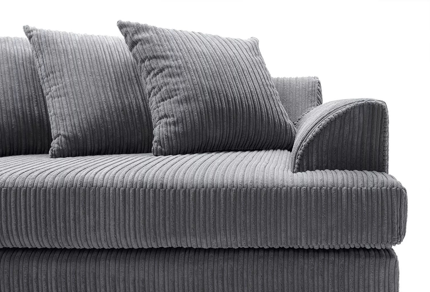 A sumptuous fabric corner sofa with soft structure cord chenille as choice of fabric. Seats 4, comfortably. Angular arms provide comfortable armrests at the ends while a pared back supports scatter cushions to help you immerse yourself in relaxation. Providing comfort is deep filled fibre seats and a back that give you plush cushioning.