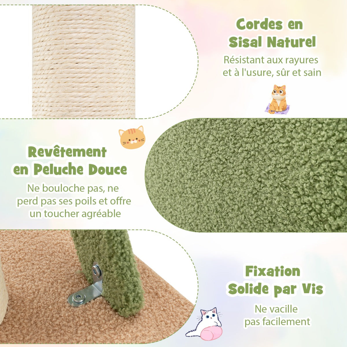 - Colour: Green+BrownMaterial: Sisal, Engineered Board, Teddy Plush FabricOverall