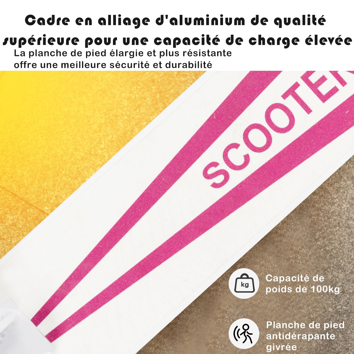 Are you struggling to find the ideal gift for your child? We highly recommend this scooter to you! This sport scooter, made from premium aluminium alloy, has been designed according to scientific principles, which makes it very durable and stable. The 3 pre-set heights, make adjusting the height to suit your individual need, simple. The scooter folds and has a carrying strap, making it easy to transport when not in use. The kickstand means the scooter can be left standing up to avoid scratching and with cool LED wheels which light when in use, it can be used at night. What is more, a super-wide and non-slip foot splint ensures a smooth and safe ride. A great way for children to exercise! The kickstand means the scooter can be left standing up to avoid scratching Foldable with carrying strap making it easy for you to carry when not riding Suitable for persons up to 100kg in weight A high-quality aluminium plate effectively reduces vibration The collapsible design eliminates the need for complex installation steps Cool LED big wheels can quickly attract children's attention 3 pre-set adjustable heights make it suitable to be used by individuals of varying heights
