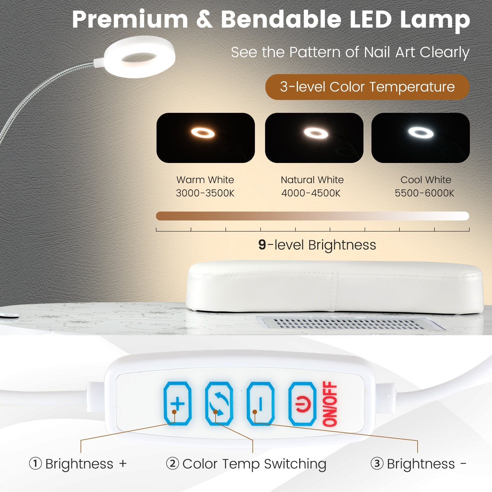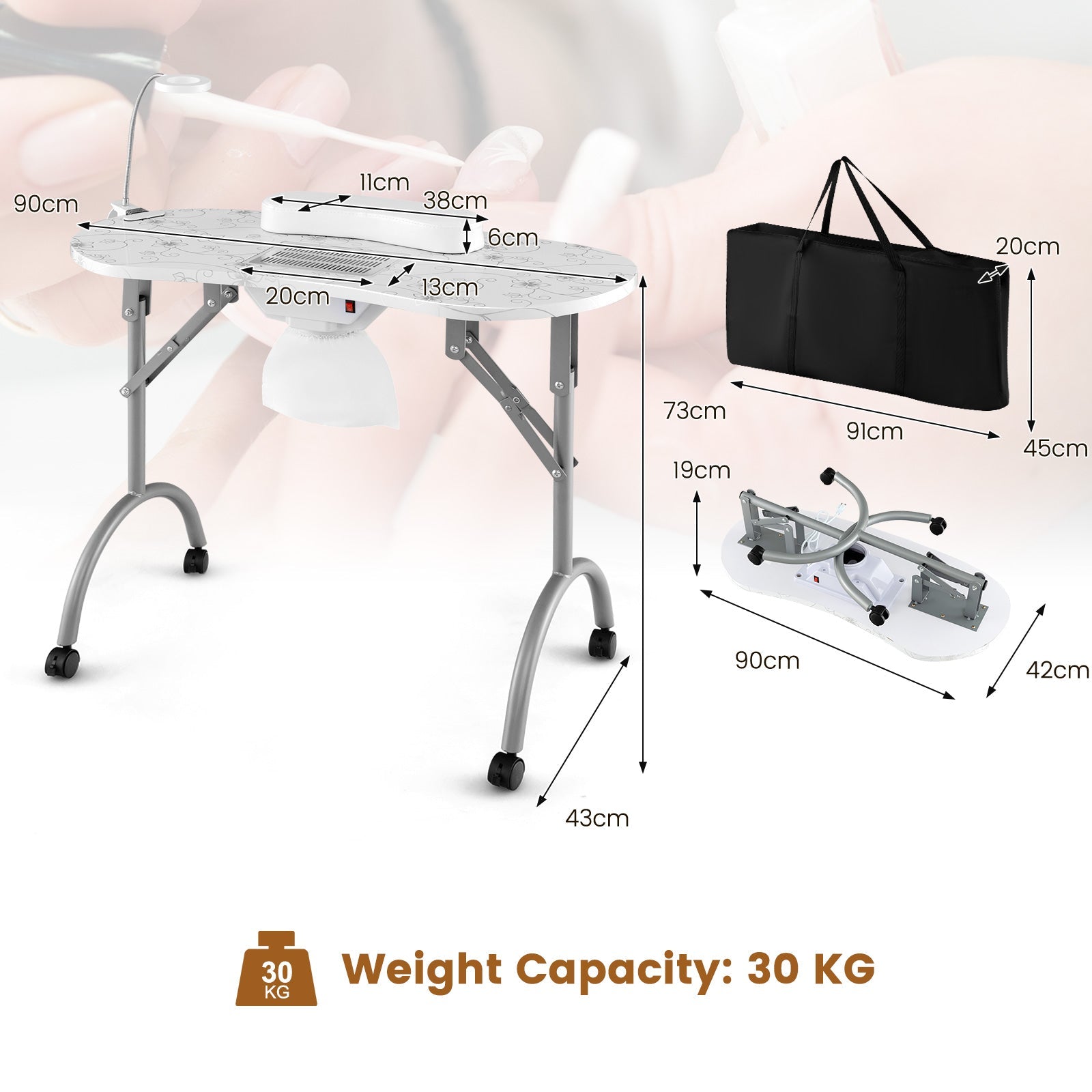 Folding Manicure Nail Table with Electric Dust Collector-White