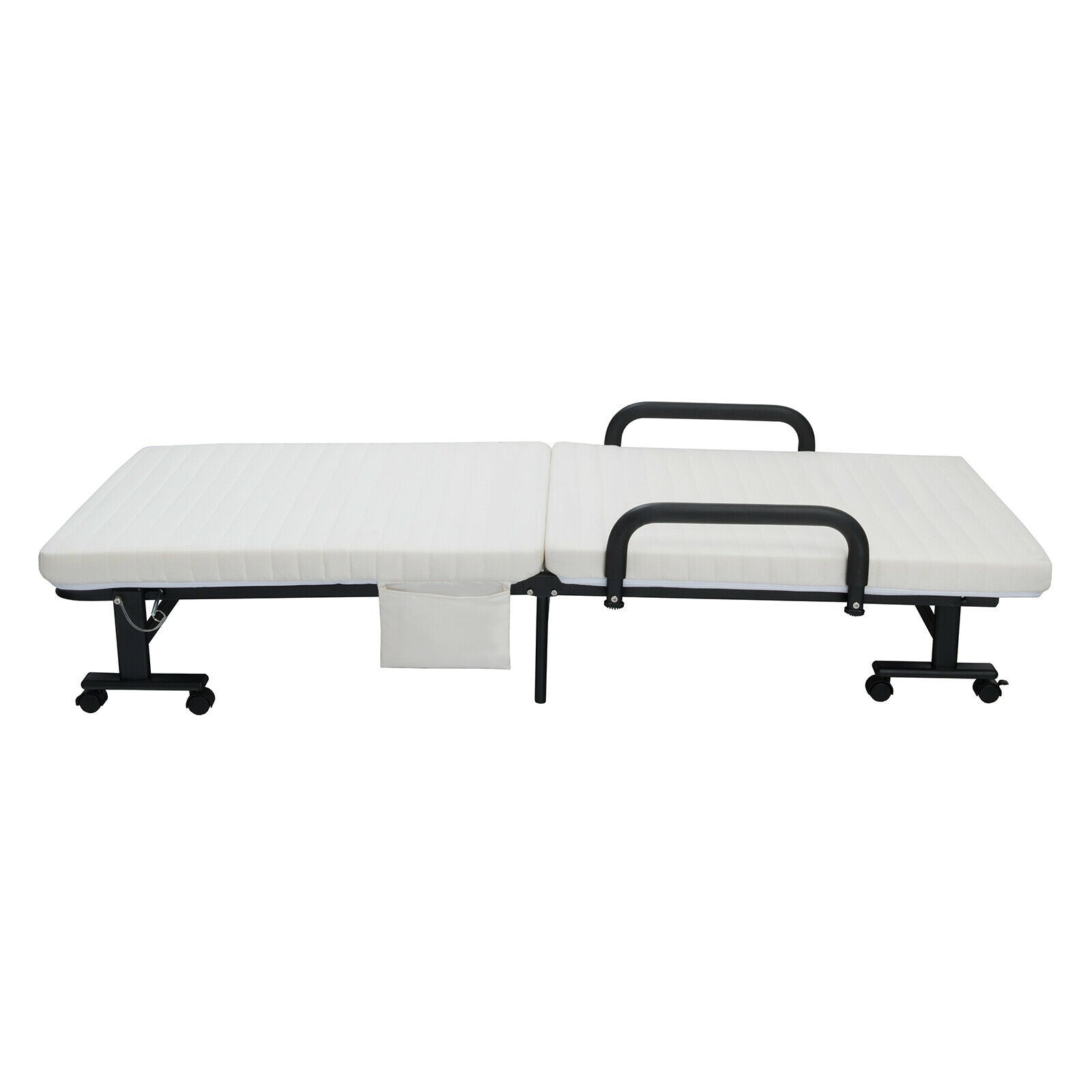 - 1 × Folding Single Guest Bed with Mattress & Metal Frame-White