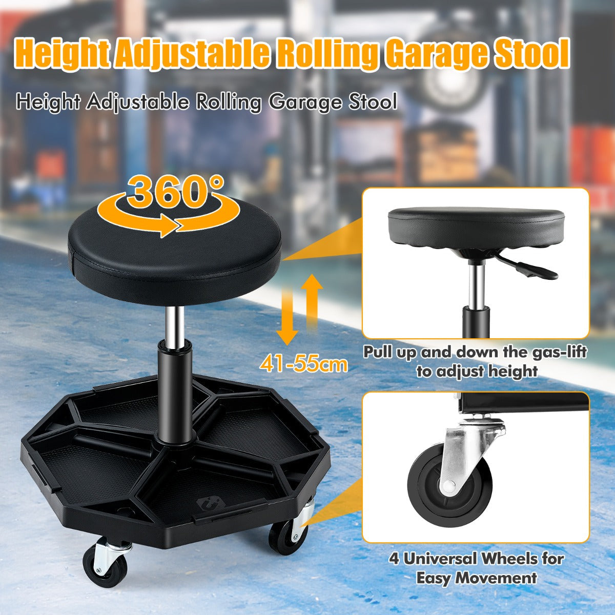 Garage Workshop Creeper Seat with Padded Seat and Tool Tray-Black