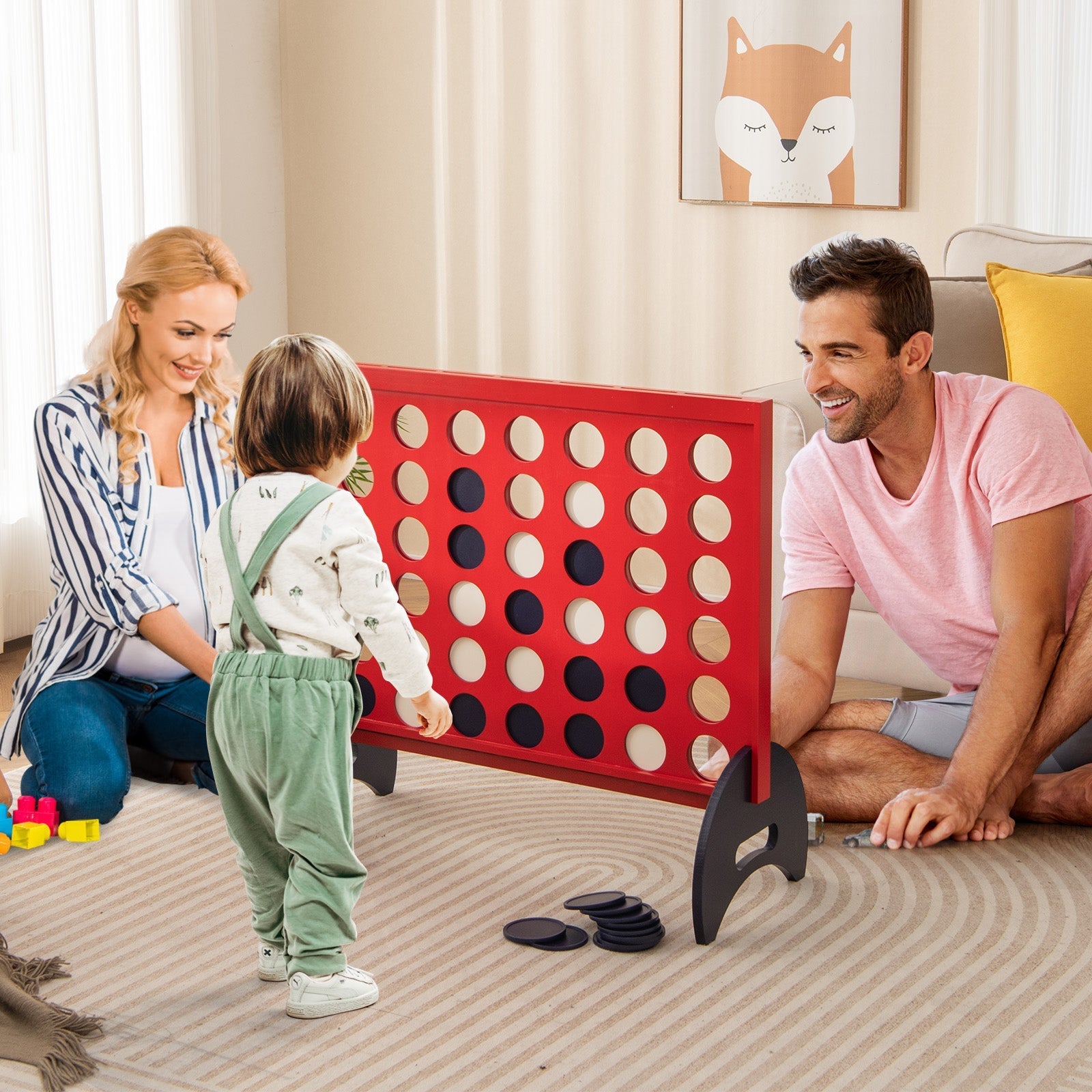 Giant 4-to-Score Game Set with Carrying Bag and 42 Pieces Jumbo Rings-Red