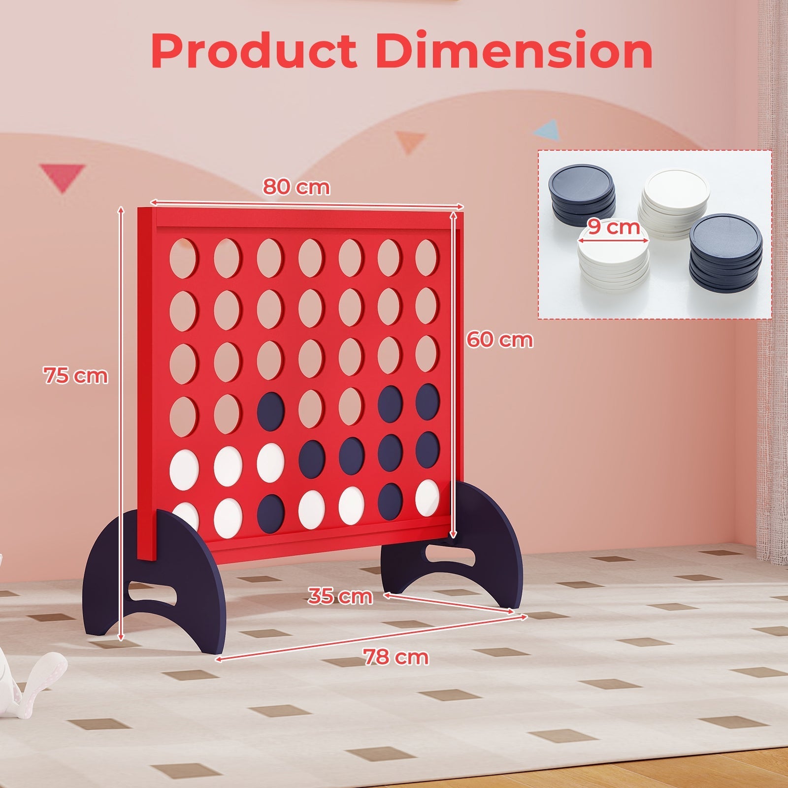 Color: Blue/Red Materials: Pine Wood, Plywood, PP Product Dimension: 80 x 35 x 75 cm (L x W x H) Size of Game Board: 80 x 60 cm (L x W) Diameter of Chip: 9 cm Net Weight: 4 kg Box Qty:1(May vary by batch)Package Includes: 1 x 4-in-a-row Game 1 x Carrying Bag 21 x Blue Chips 21 x White Chips 1 x Instruction