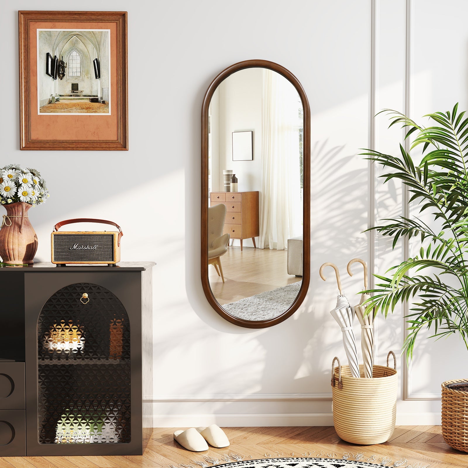 This hanging mirror full length mirror wood frame wall-mounted mirror-walnut is designed to keep your space organised while delivering reliable everyday functionality and a clean, modern look.