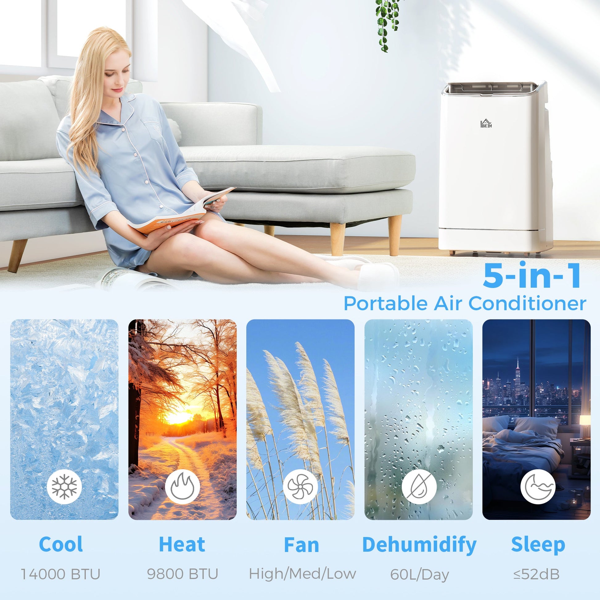 HOMCOM 14000 BTU Mobile Air Conditioner, Smart Home WiFi Compatible, with Heater, Cooler, Dehumidifier, Fan, 24H Timer