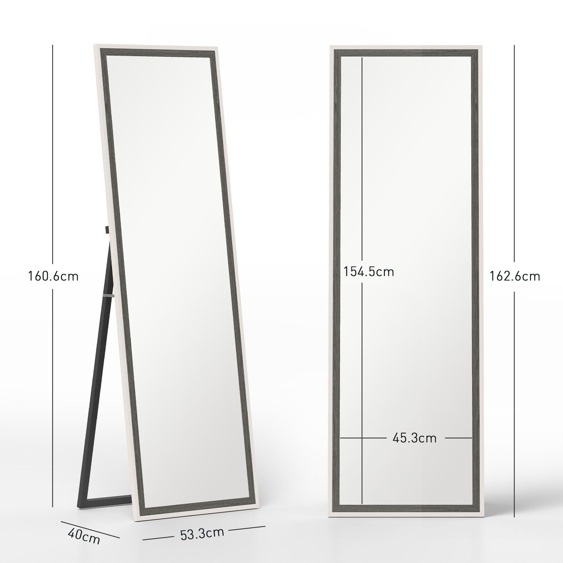 HOMCOM 162.6 cm Two-Tone Full Length Mirror - White/Grey-Tone