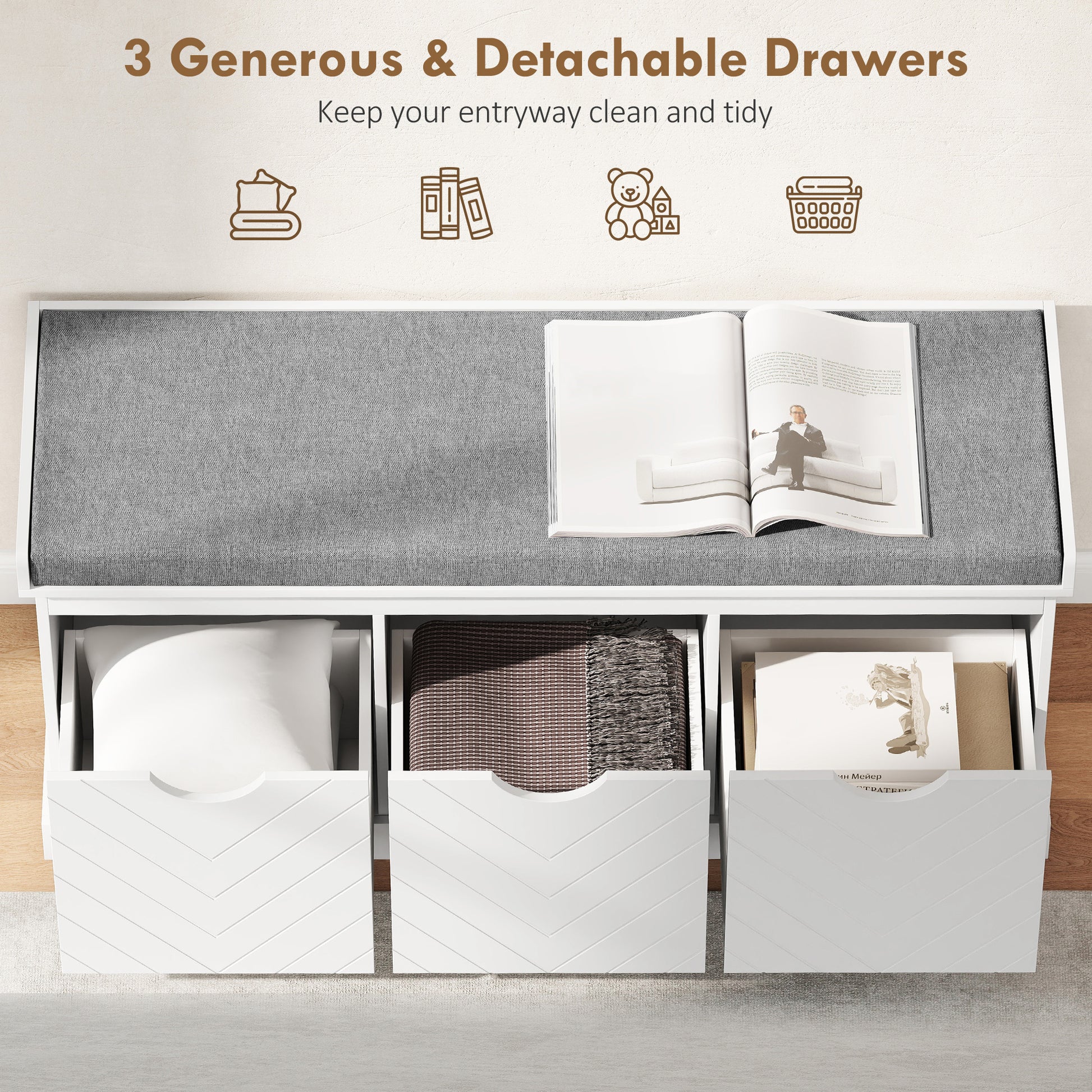 HOMCOM 3-Drawer Padded Shoe Bench with Breathable & Washable Linen-look Cover, White