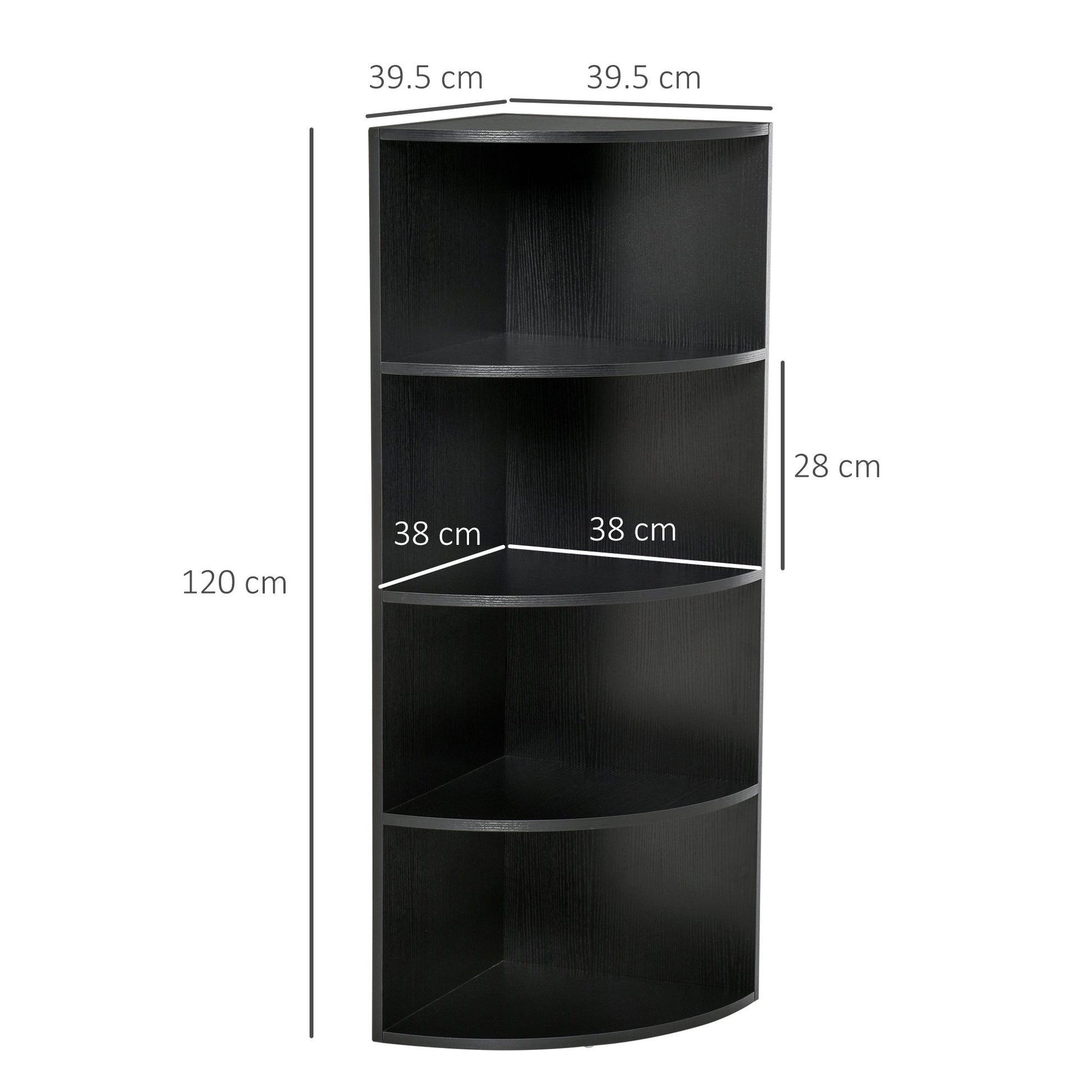 HOMCOM 4-Tier Corner Open Shelf Bookcase Freestanding Fan Bookshelf Plants Stand, 40x40x120cm, Black