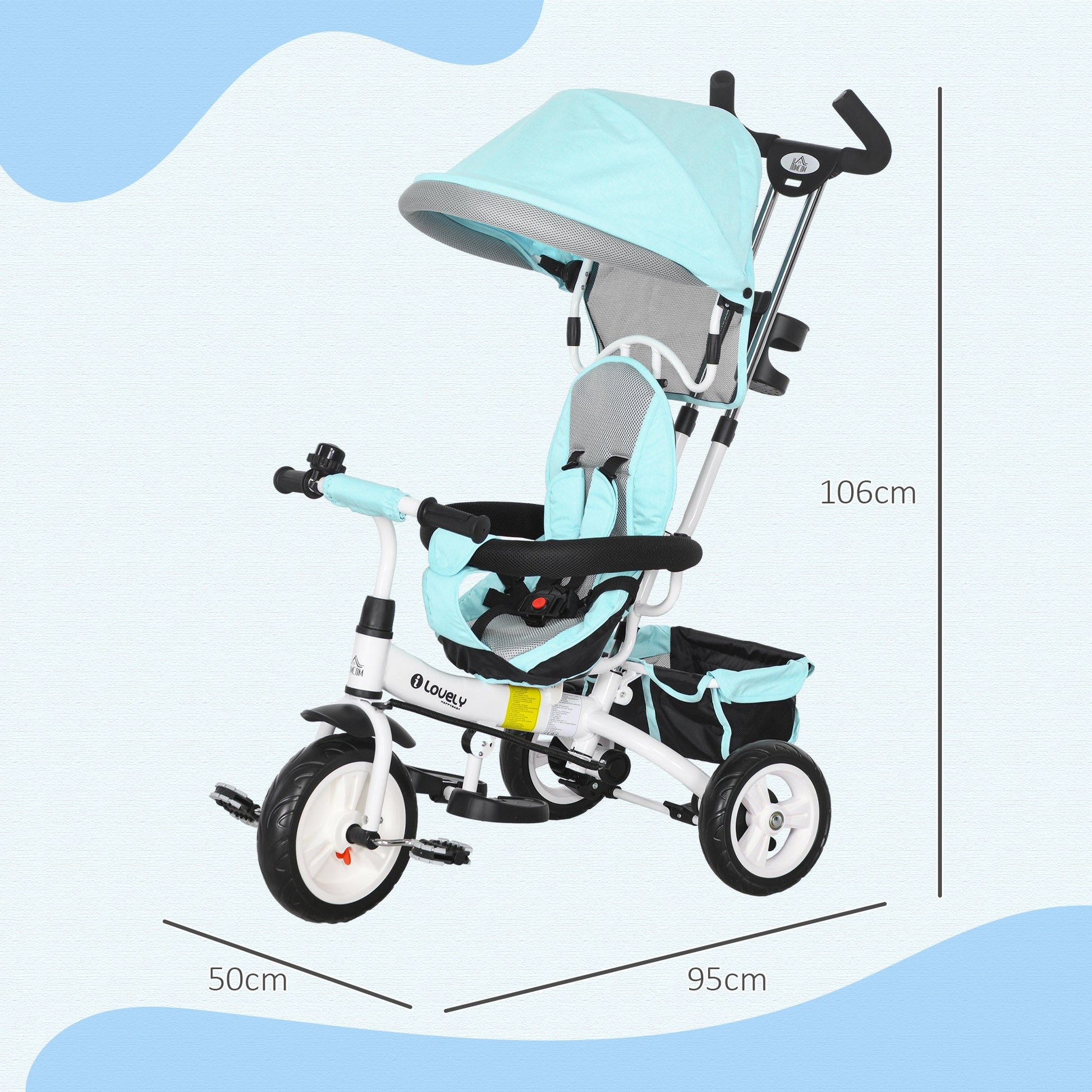 HOMCOM 6 in 1 Kids Trike Push Bike w/ Push Handle, Canopy, 5-point Safety Belt, Storage, Footrest, Brake, for 1-5 Years, Green