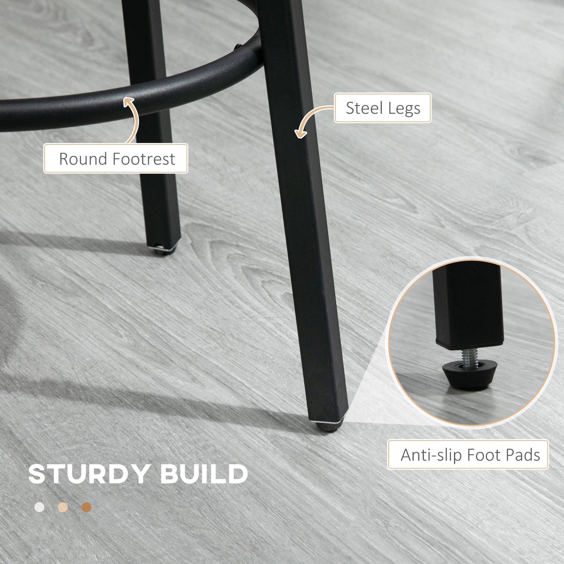HOMCOM Bar Stools, Set of 2 Kitchen Breakfast Stools with Sturdy Steel Frame, Industrial Tall Bar Chairs, 65cm High Seat, Rustic Brown