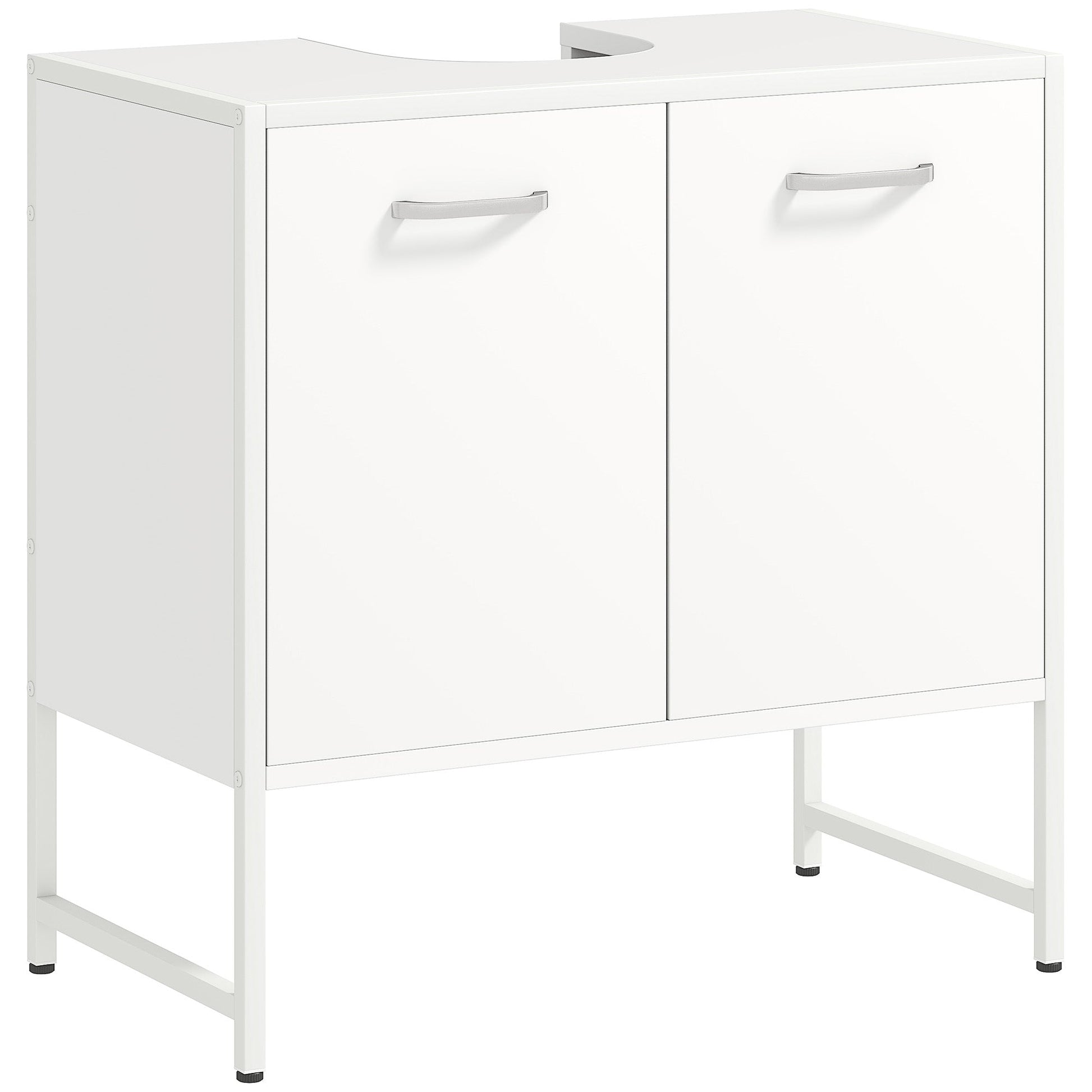 Transform your bathroom with the under sink bathroom cabinet from HOMCOM, cleverly designed to fit around most basins with its 20 x 20 cm U-shaped slots. Enjoy the quiet of soft-close hinges that prevent door slamming and optimise your space with adjustable three-level shelving behind double doors. The HOMCOM under sink storage cabinet is a great solution for any bathroom.