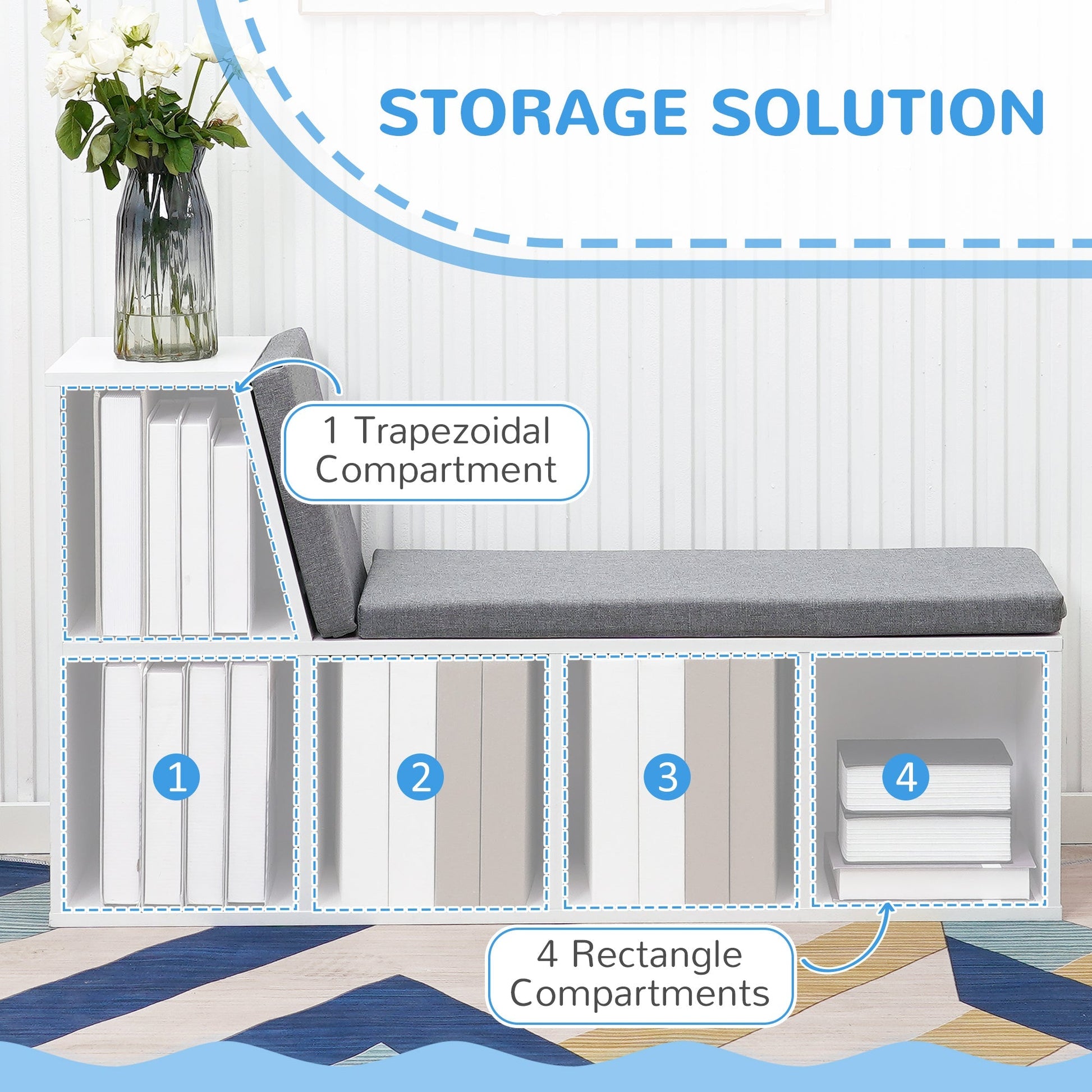 HOMCOM Bookcase Storage Shelf with Cushioned Reading Seat, Bookshelf Storage Cabinet for Study Living Room, White