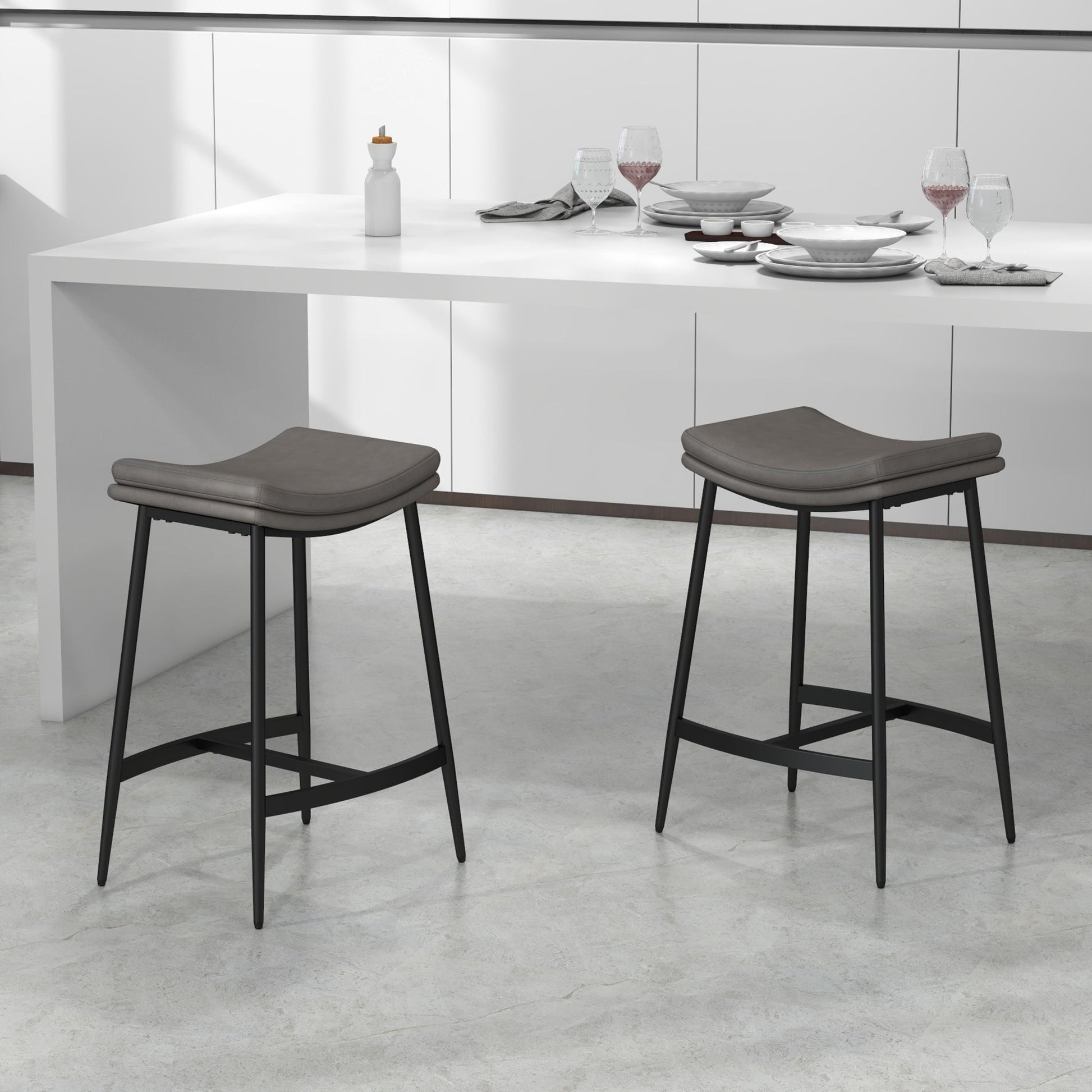 HOMCOM Breakfast Bar Stools Set of 2, Microfibre Upholstered Barstools, Industrial Bar Chairs with Curved Seat and Steel Frame for Dining Room, Kitchen, Grey