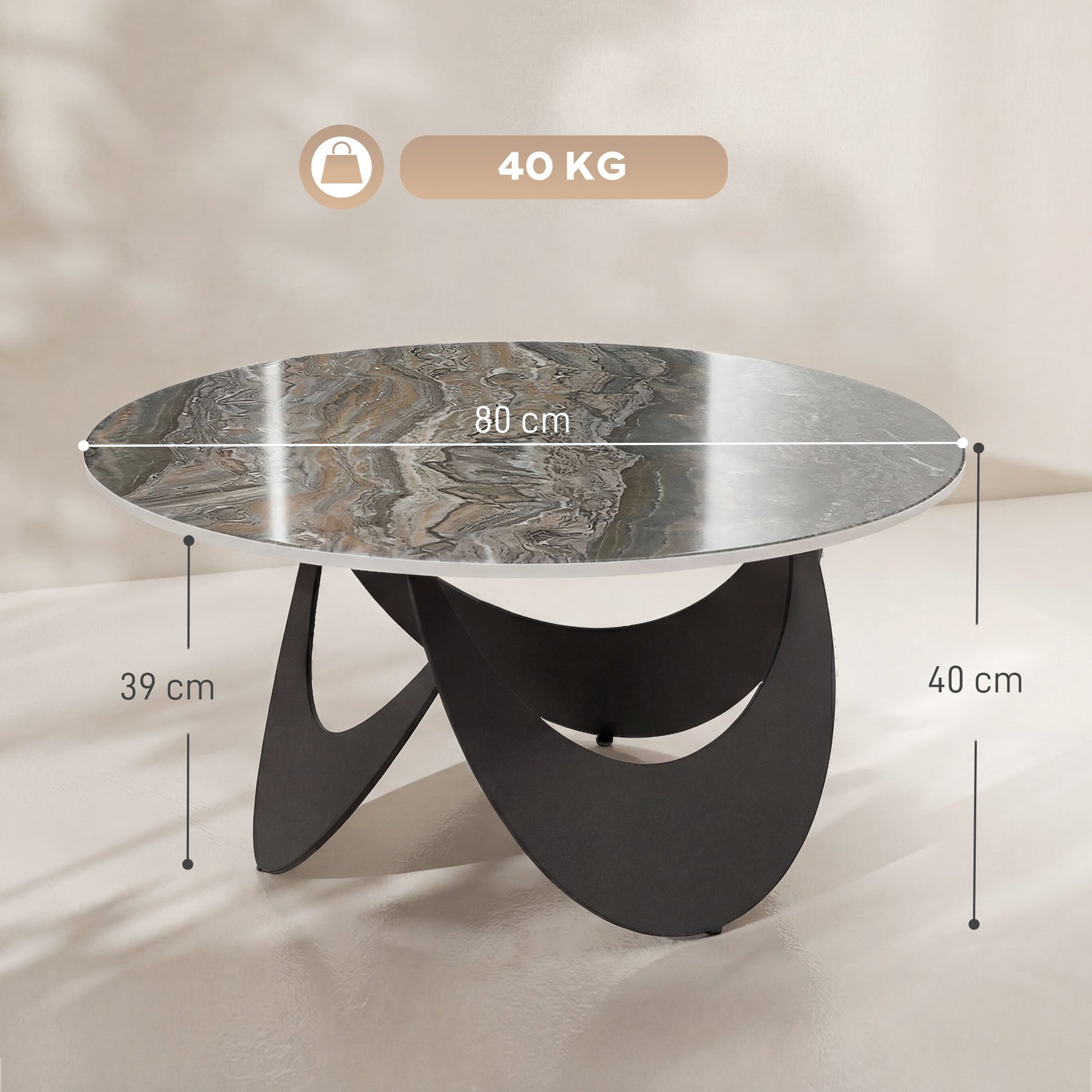 - Overall Dimensions: 80W x 80D x 40H cm