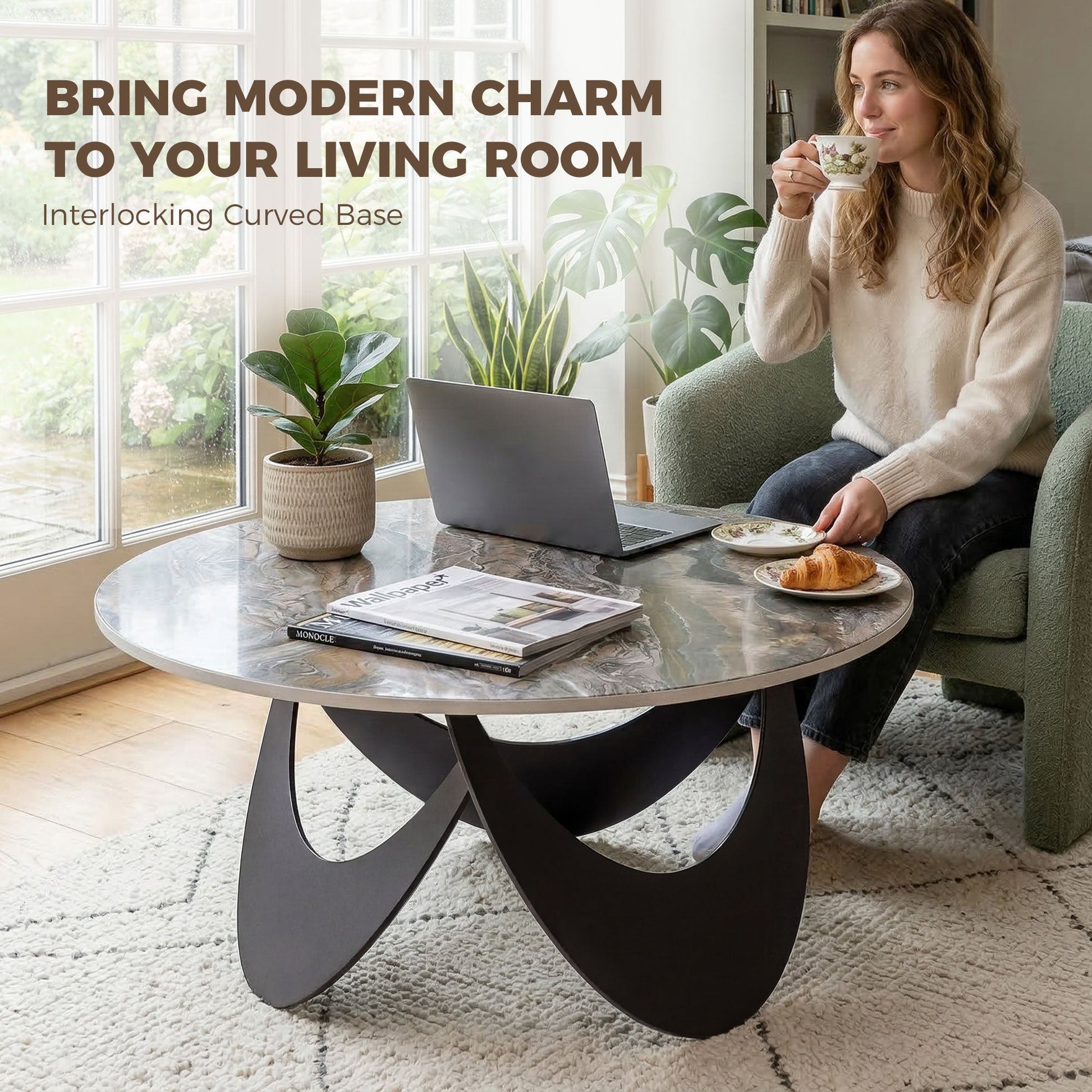 Coffee table selection can be a source of stress, with worries about heat marks from mugs and accidental spills. This anxiety prevents you from fully relaxing in your own living room. The HOMCOM living room table, with its stunning artistic design, solves this. Its elegant sintered stone top is heat-resistant and cleans effortlessly, offering you peace of mind and a more convenient, stylish lifestyle in your beautifully curated space