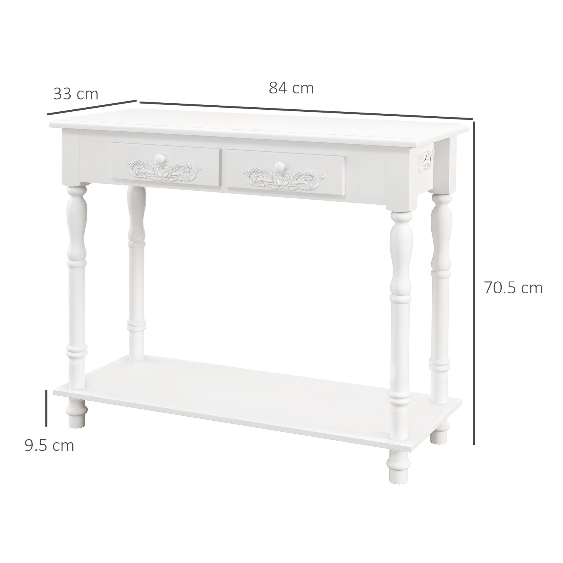HOMCOM Console Table Modern Sofa Side Desk with Storage Shelves Drawers for Living Room Entryway Bedroom White