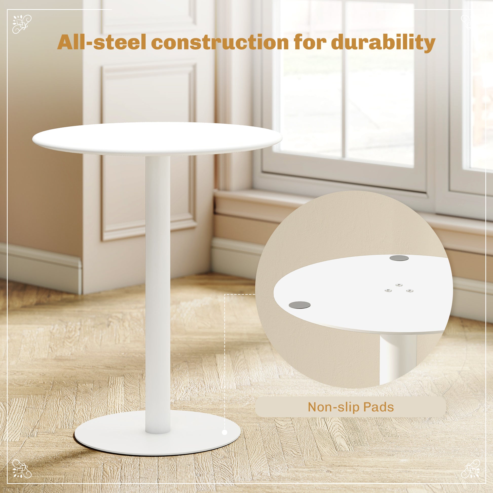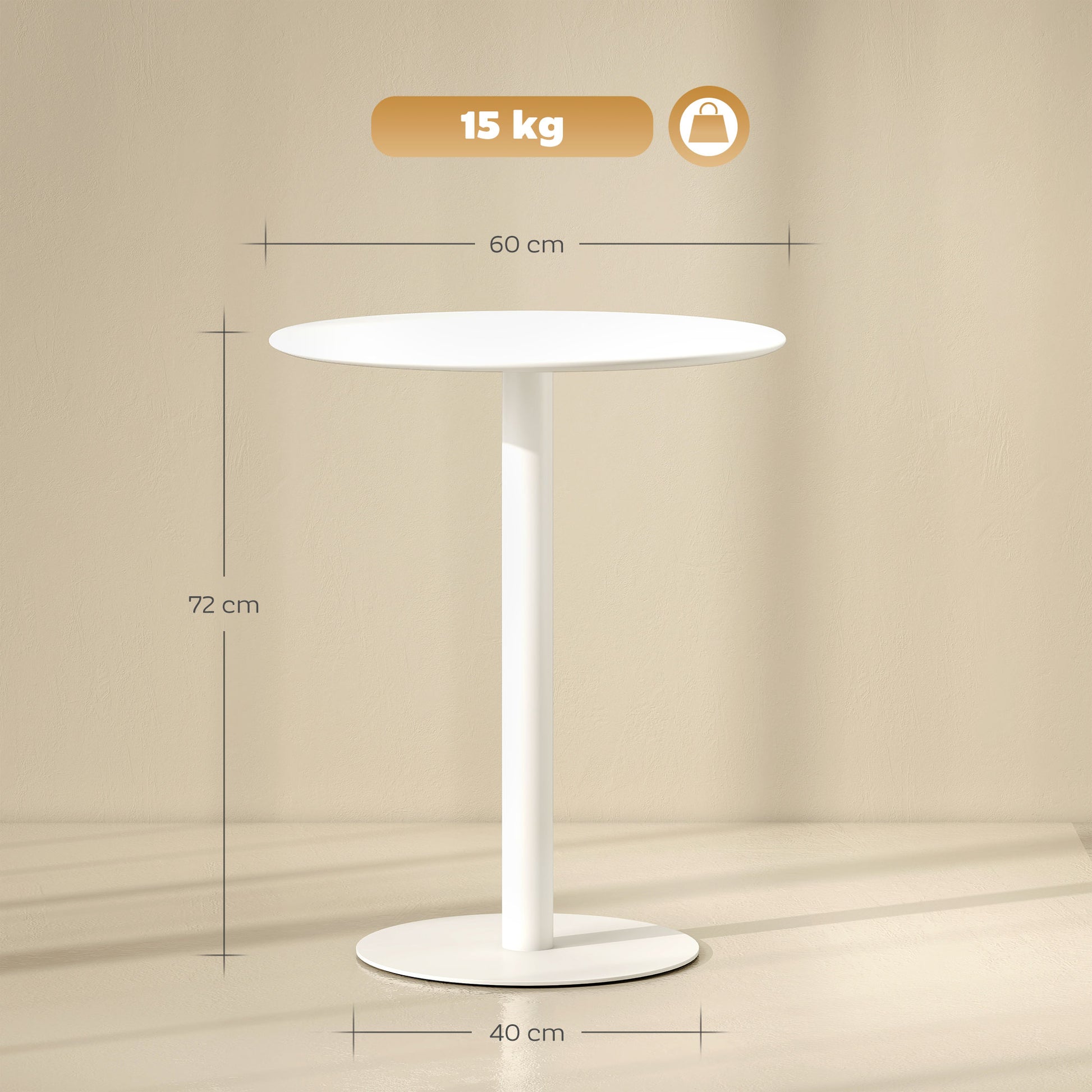 Discover the charm of compact dining with the HOMCOM Kitchen Table. Great for snug spaces and intimate meals, this 60 cm round dining table fits two comfortably—great for balconies or cosy cafes. Crafted from robust steel, it ensures stable support while its sleek, matte white finish adds a touch of modern elegance to any setting, indoors or out.