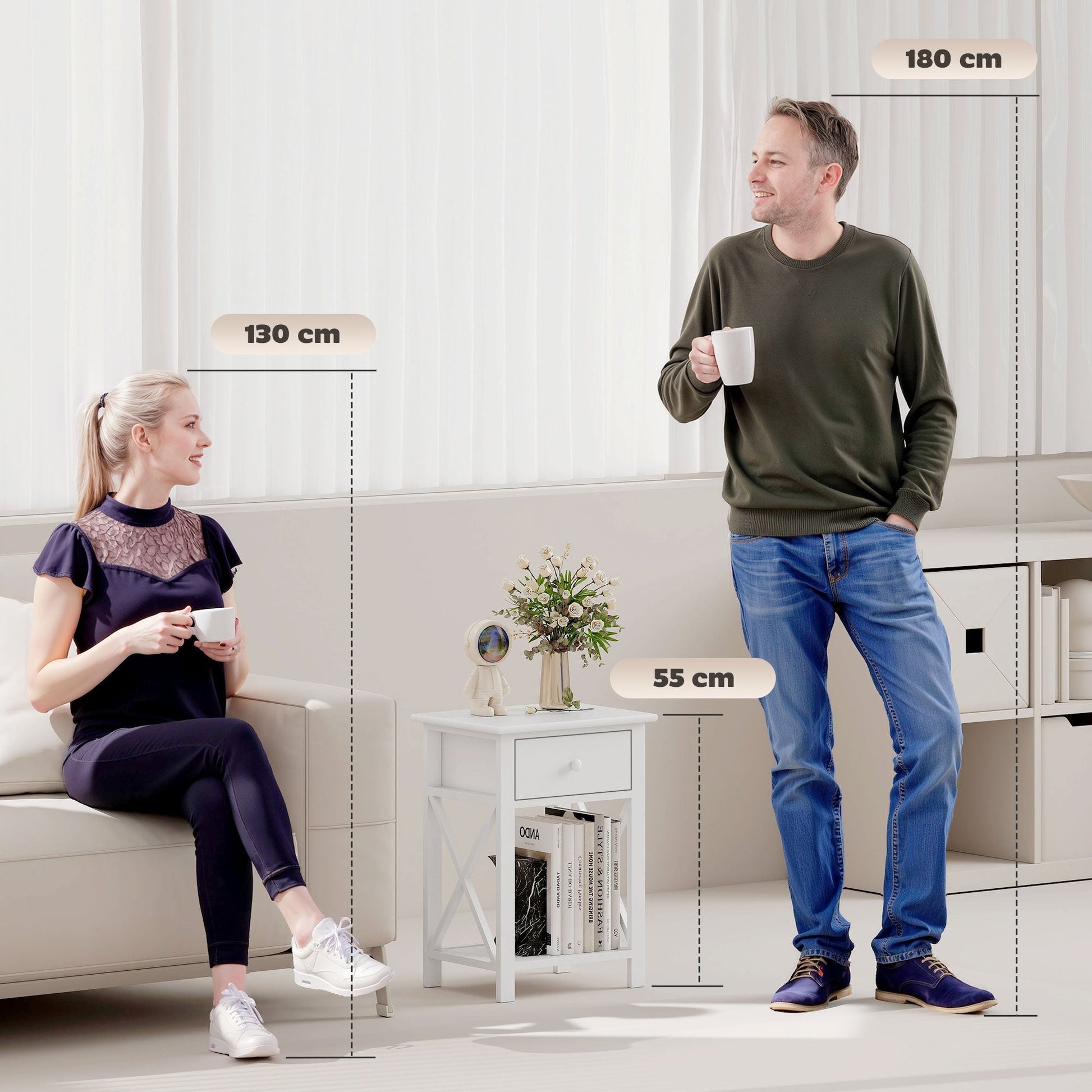 Bring simple beauty into your home with this side table from HOMCOM. Made from MDF for a sturdy structure, it is crafted into a simple, yet beautiful design, making it a welcome addition to any room. It features an open bottom shelf and a top drawer, giving you lots of storage space to keep the area neat and tidy. The frame is given extra strength with the side cross bars, helping to keep the shape unified. The perfect piece to enhance your home and beyond.