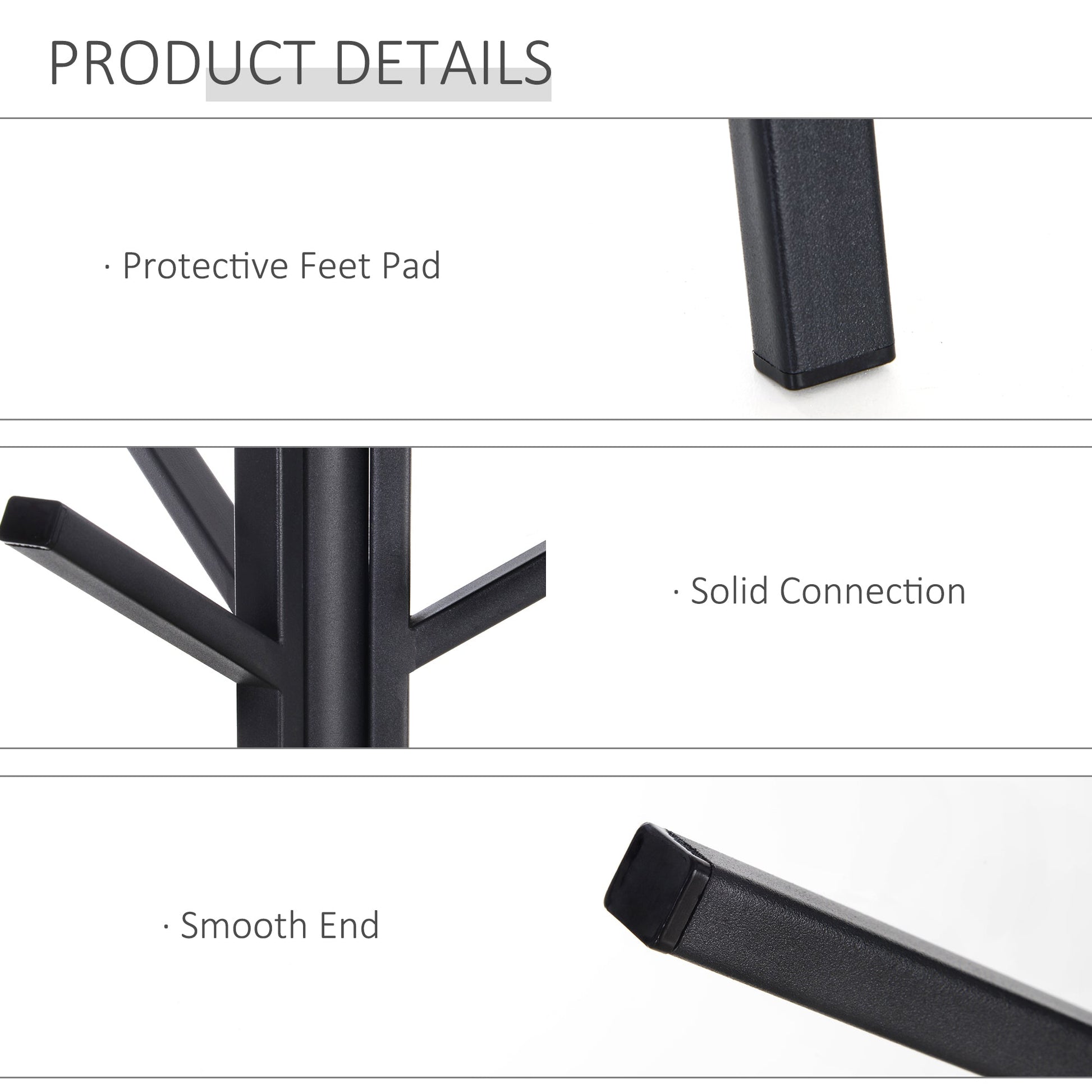- Stoving varnish finish on surface makes the coat rack water-proof, rust-proof and easy to clean