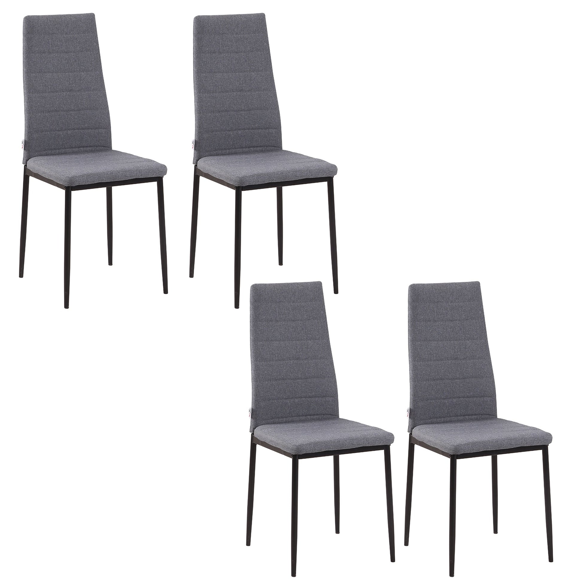 Complete your kitchen or dining area in matching style, thanks to this four-piece chair set from HOMCOM. Seats are cushioned for comfort, with high backs for support. Linen-look upholstery is smooth and in style. Steel legs for full support when seated.