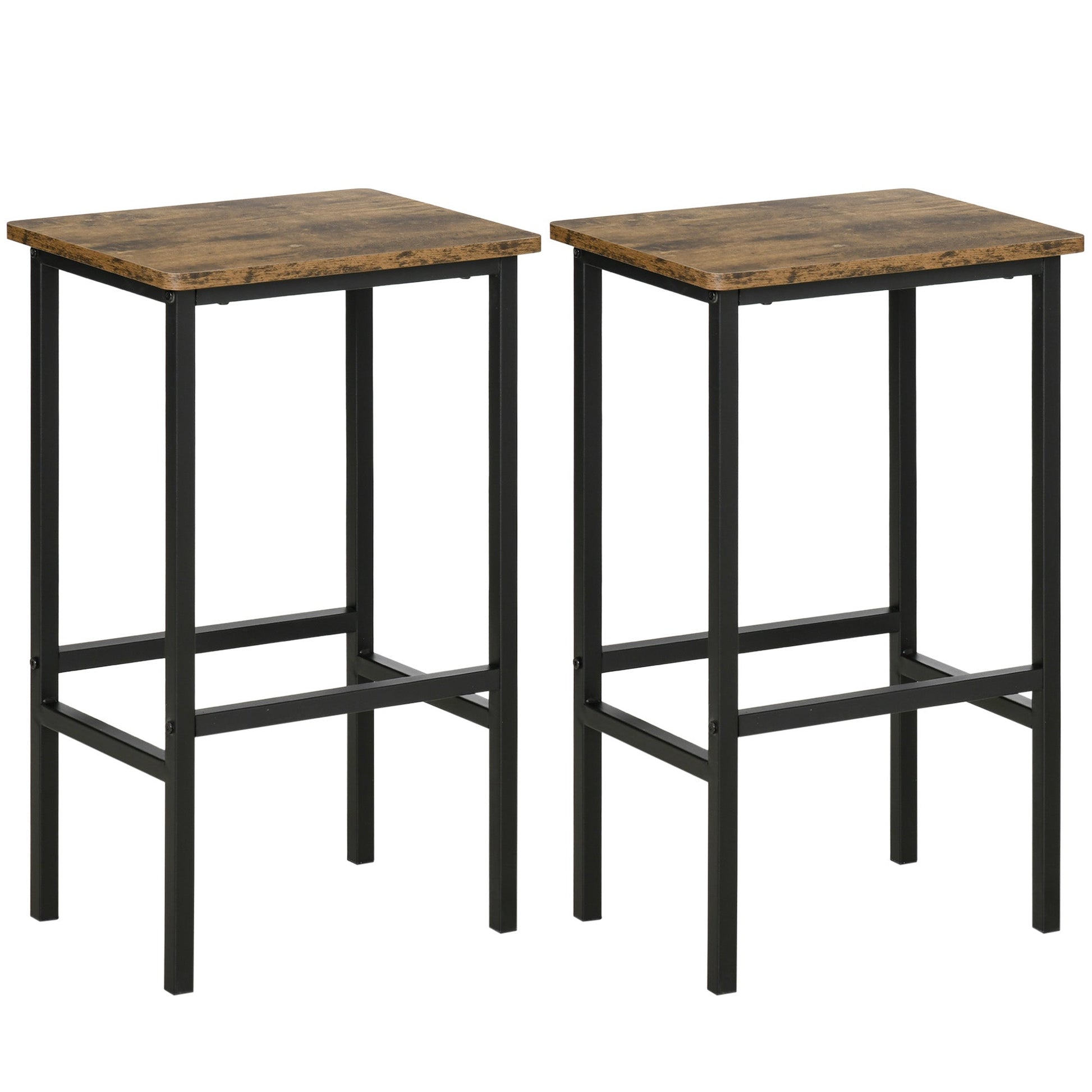 HOMCOM Industrial Bar Stools, Set of 2 Kitchen Breakfast Bar Chairs with Footrest, Counter Height Island Stools for Dining Area, Home Pub, Rustic Brown