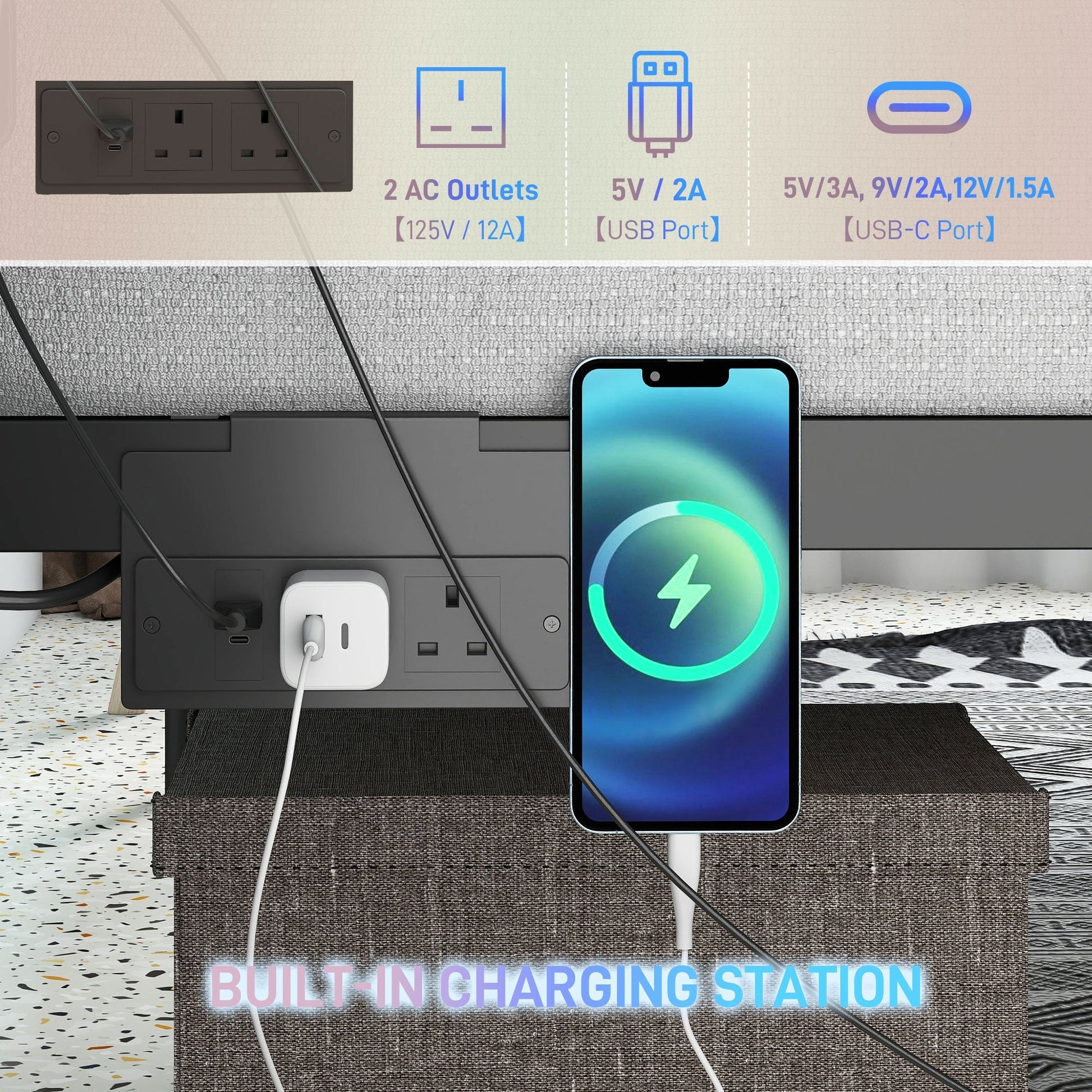 HOMCOM King Bed Frame with LED Lights and Charging Station, Metal Platform Bed Frame with Under Bed Storage, Black