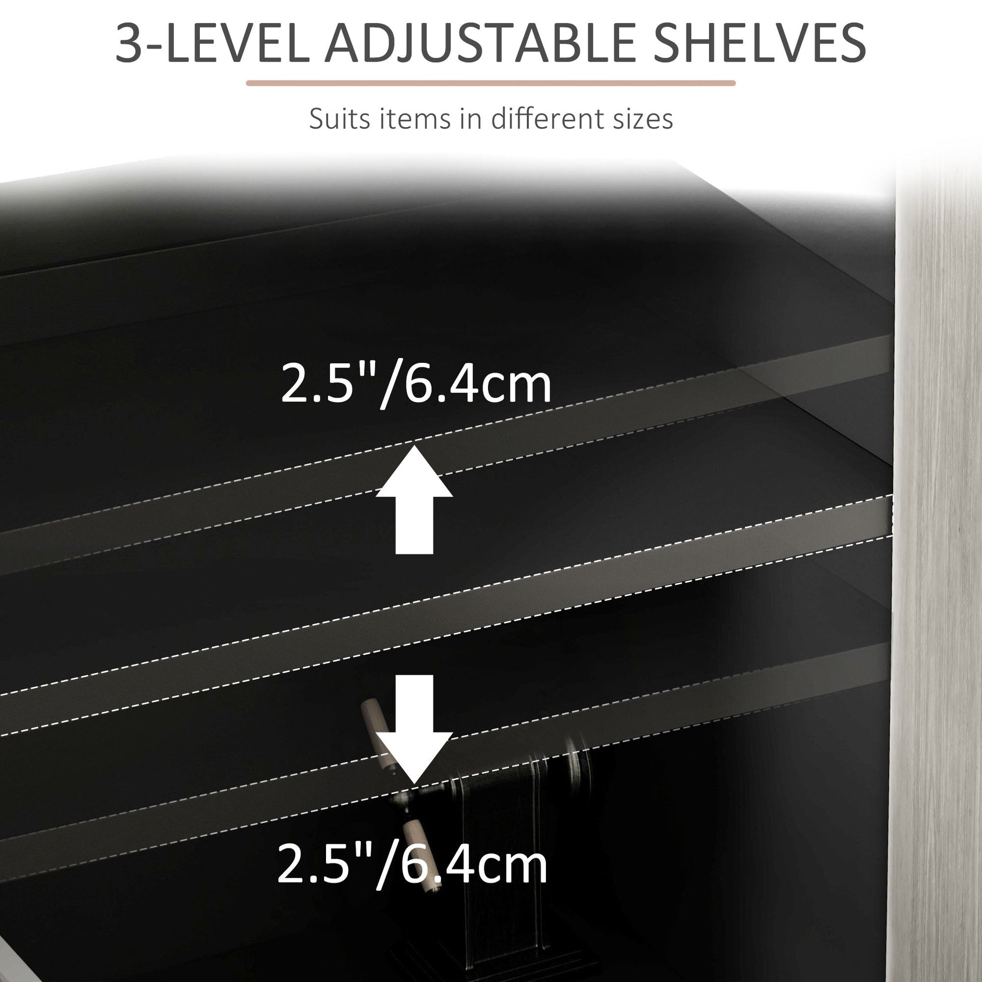 Your home staple, made stylish. Not just a piece to love looking at, but this HOMCOM storage sideboard keeps your home tidy. Four doors open to reveal a middle shelf in the two compartments, creating four individual areas; great for organising crockery, boxes and more. The flat table top is ideal for your favourite pieces, in full display. Show off photos, trinkets and more. The push-open doors are a handy finishing touch.