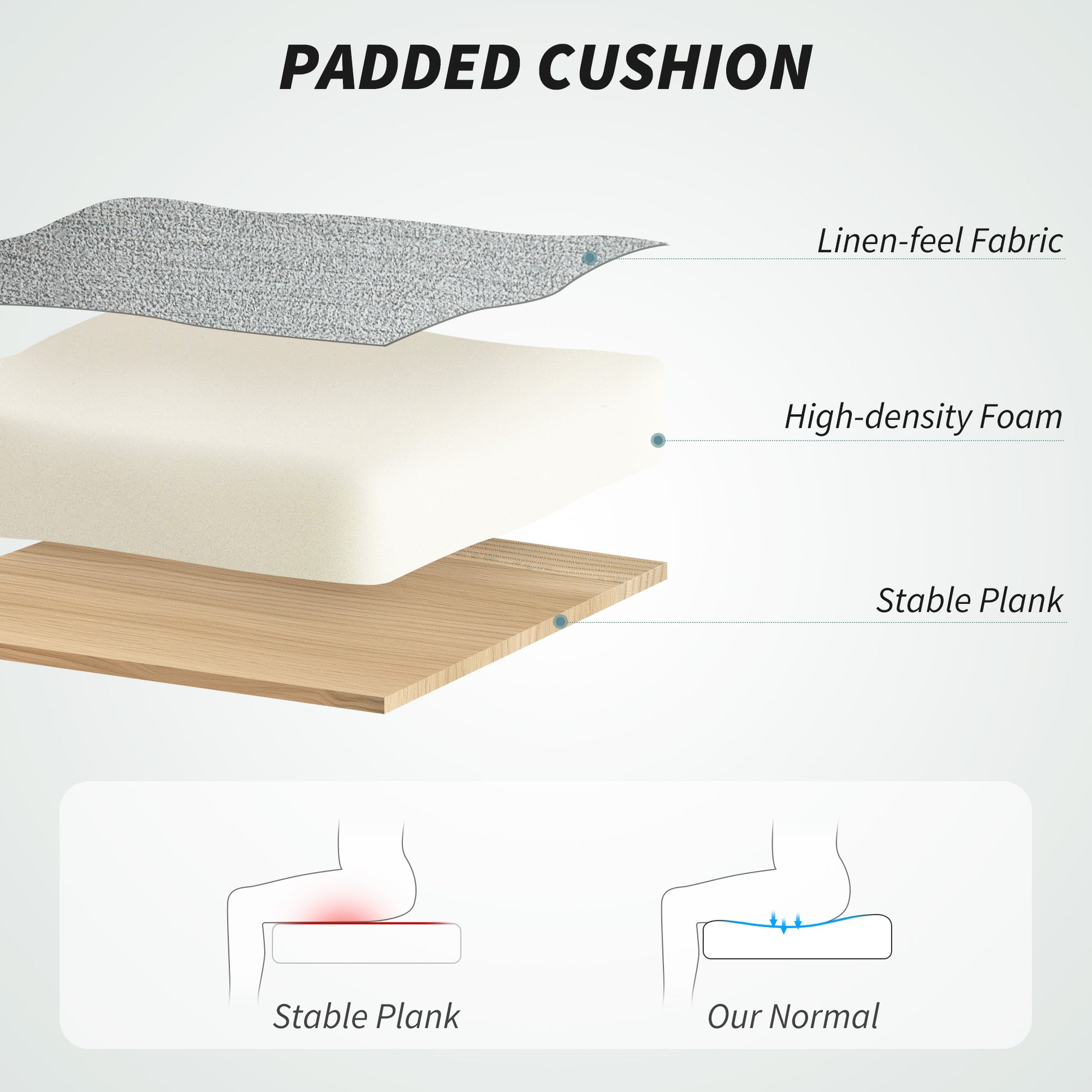 Double the office comfort with our HOMCOM office chair. The double-layer 12 cm cushioned seat and back keep you comfortable as you work, so you can just focus. Adjust the seat height between 50-60 cm, so you work at the level you need. It's wrapped in breathable linen-look upholstery; complete with silent-glide wheels to roll around easily.
