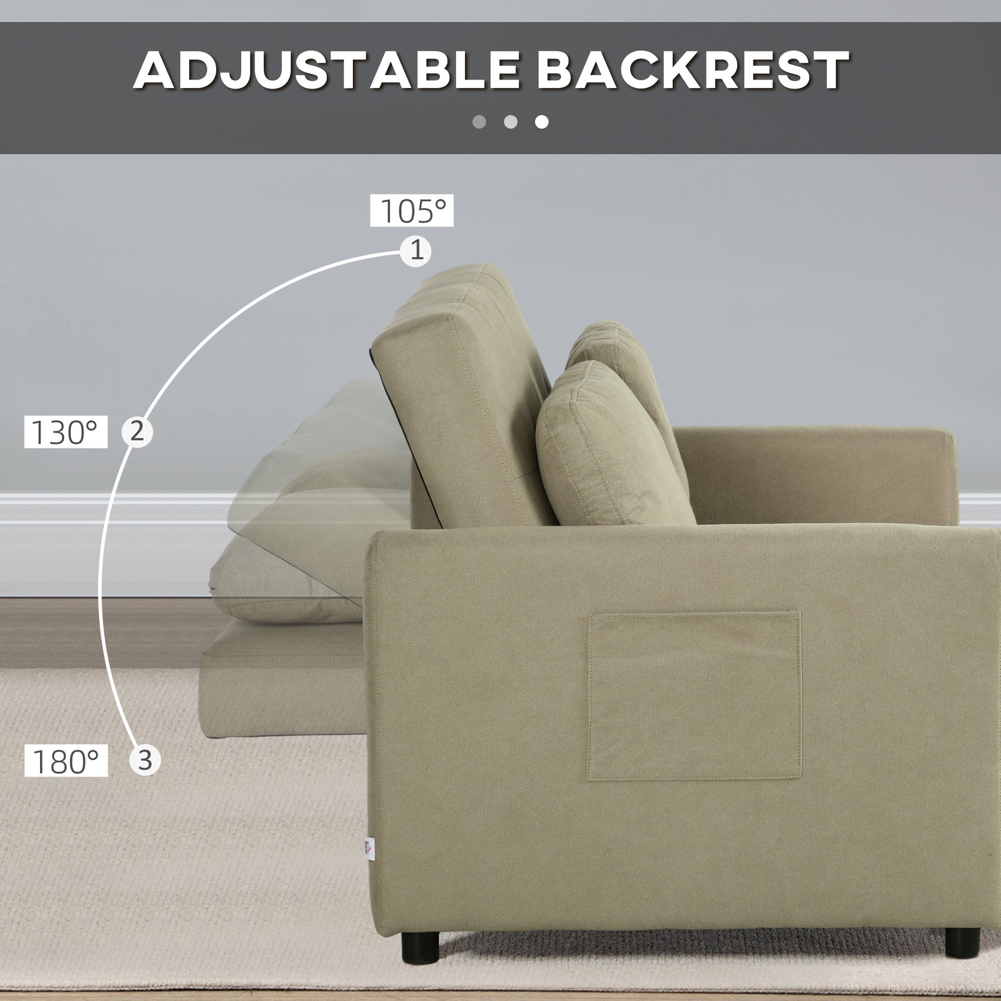 HOMCOM Loveseat Sofa Bed, Convertible Bed Settee with 2 Cushions, Side Pockets for Living Room, Light Brown