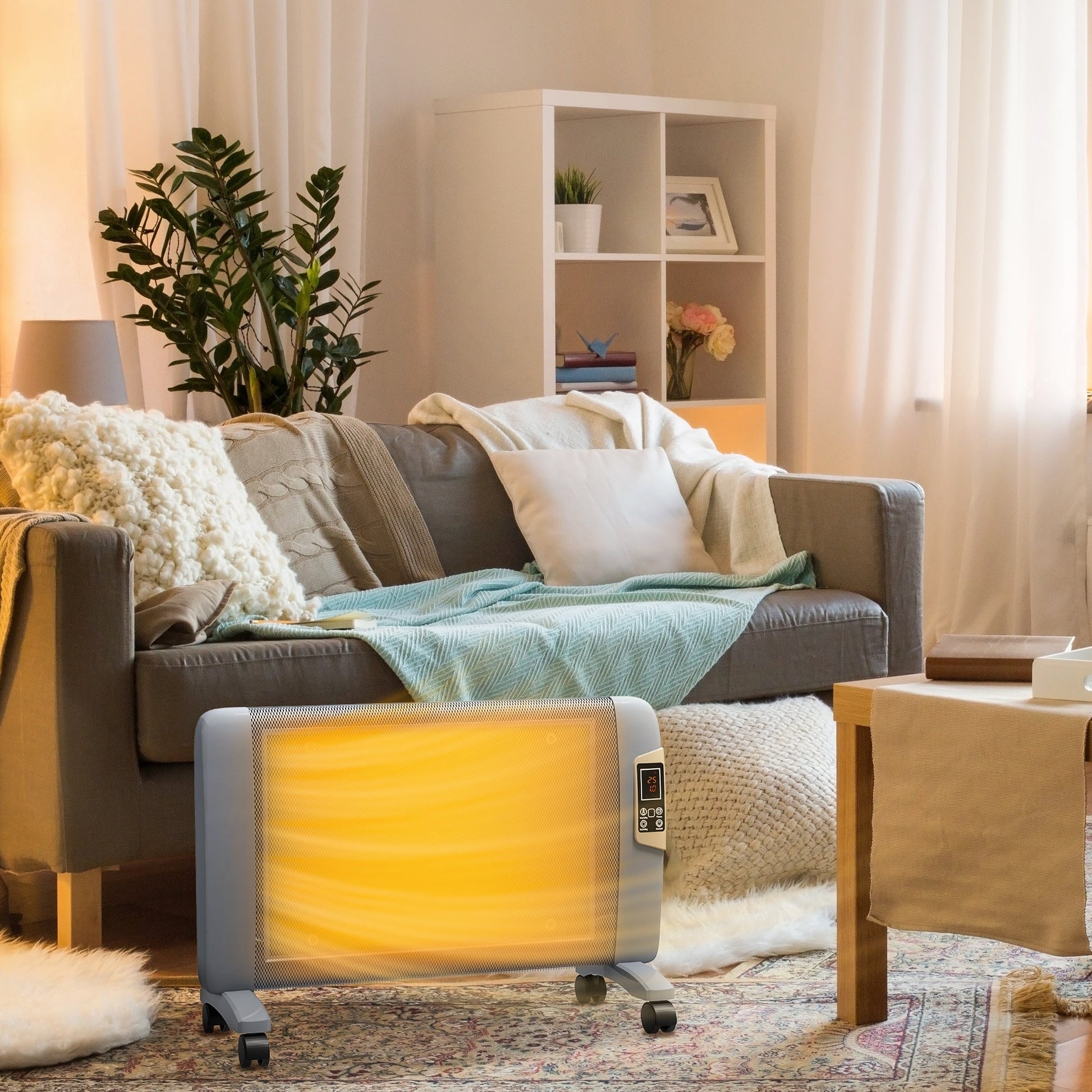 HOMCOM Mica Electric Space Heater, Portable Heater for Home with 2 Heat Settings, Living Room, Study, Garage, Adjustable Temperature 18-30°C, 1000W/2000W, Grey
