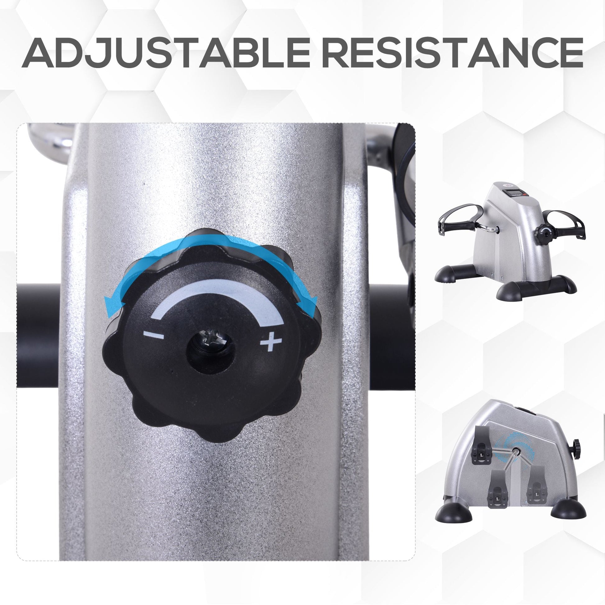 HOMCOM Mini Exercise Bike, Portable Pedal Exerciser, Under Desk Bike with LCD Display for Legs and Arms Training, Silver Tone