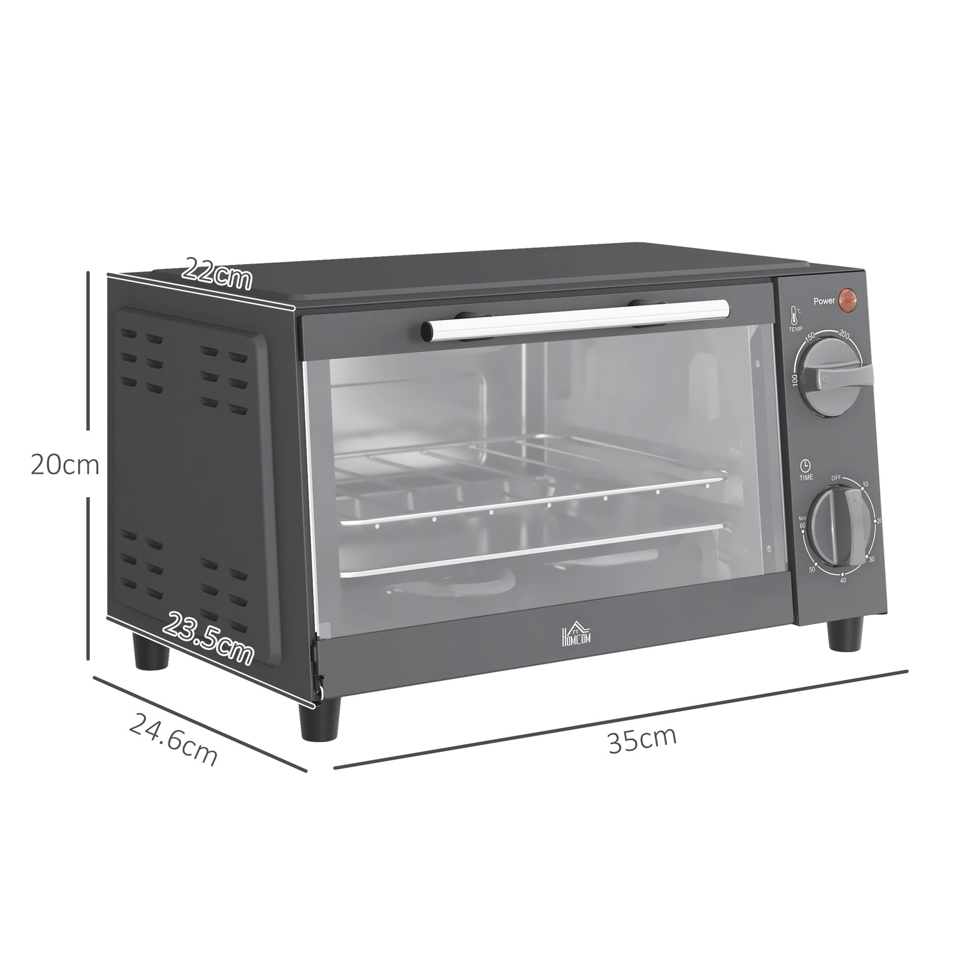 HOMCOM Mini Oven, 9L Countertop Electric Grill, Toaster Oven with Adjustable Temperature, Timer, Dishwasher Safe Baking Tray and Wire Rack, 750W, Grey