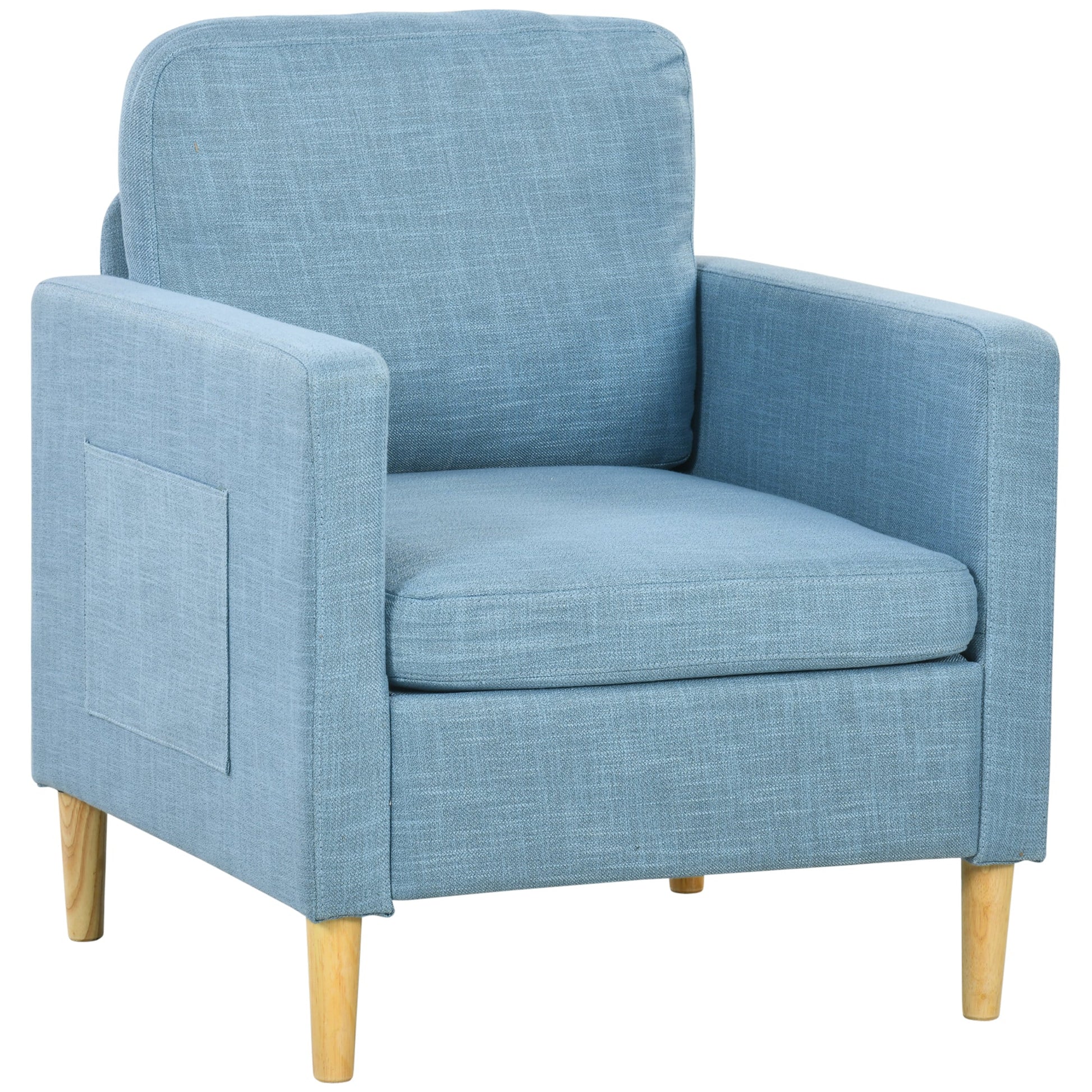 HOMCOM Modern Accent Chair, Comfy Fireside Chair, Upholstered Armchair for Living Room, Bedroom, Home Office, Blue