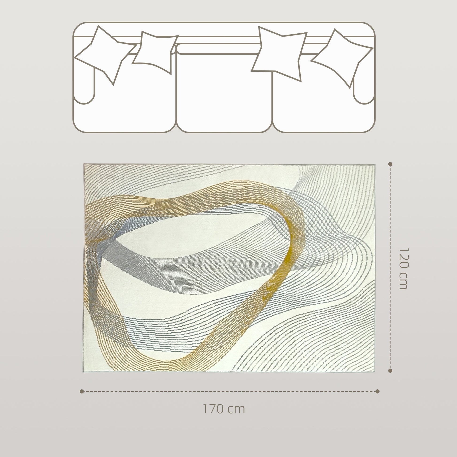 HOMCOM Modern Area Rug, Machine Washable Rug, Allergy-Friendly Floor Carpet for Living Room, Bedroom, Dining Room, Home Office, 170 x 120 cm, Cream White